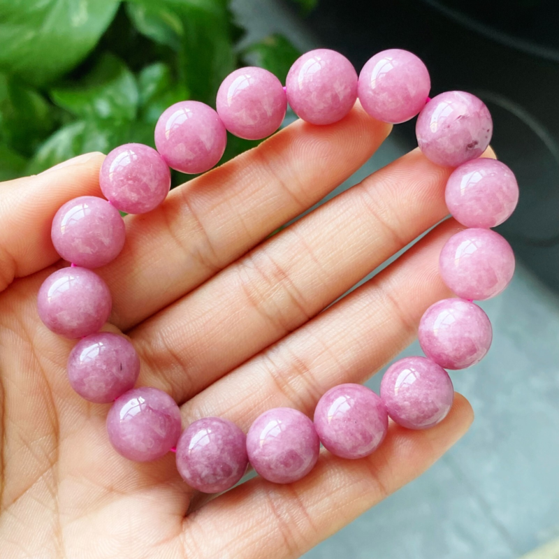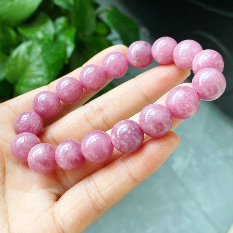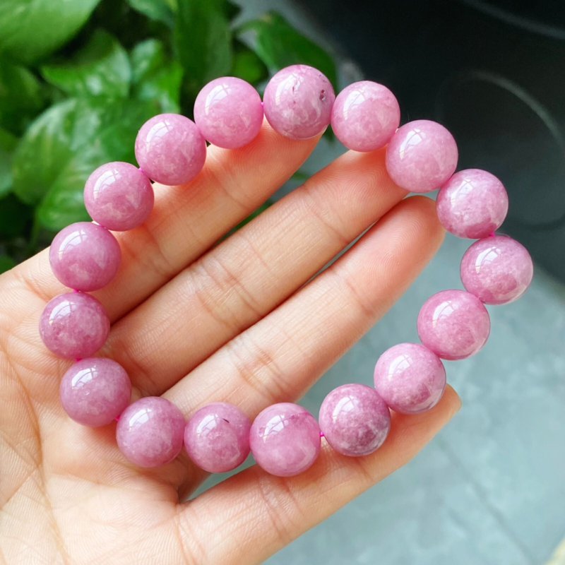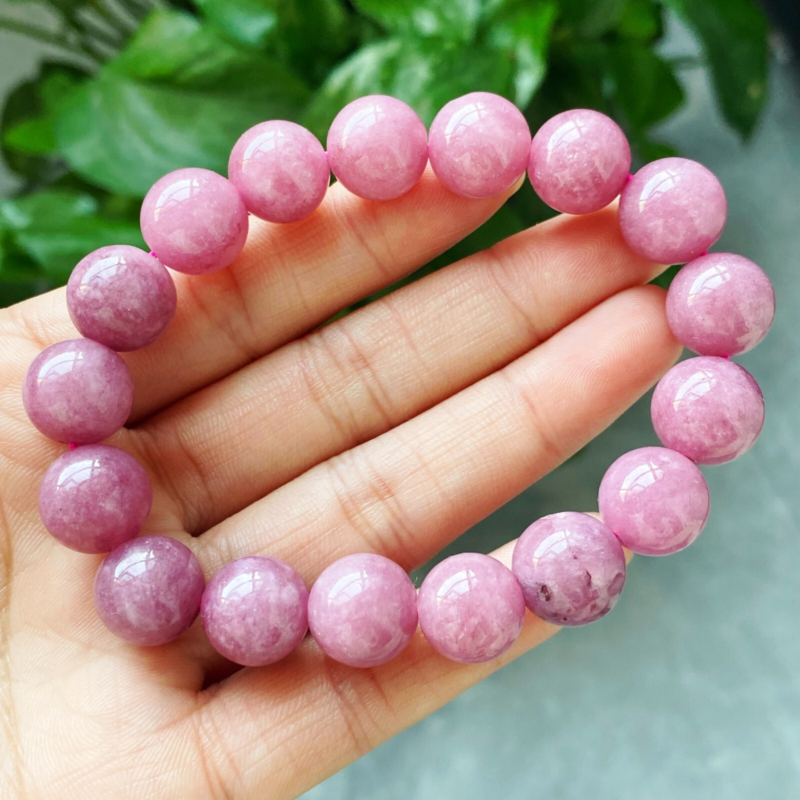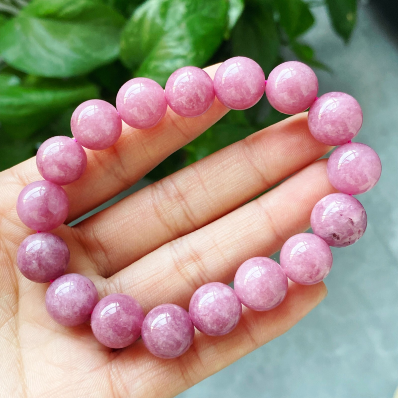 12mm Genuine Natural Pink Rose Crystal Round Beads Bracelet