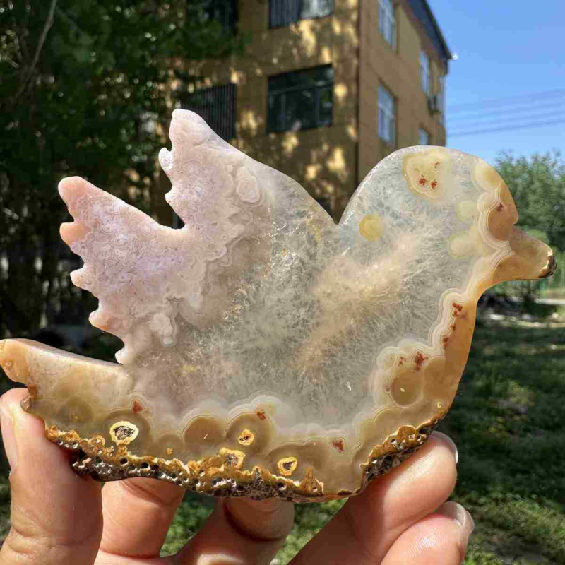 130g natural agate hand carved bird skull quartz crystal cluster reiki