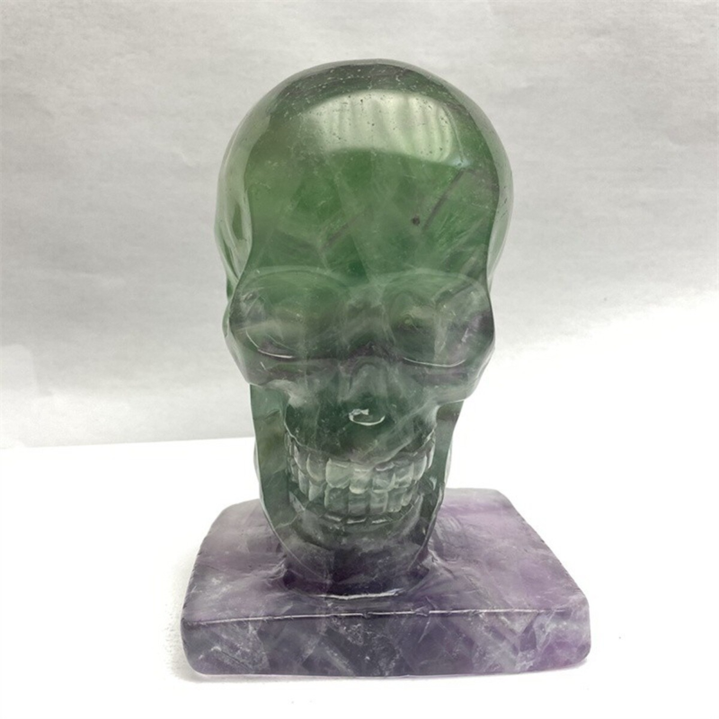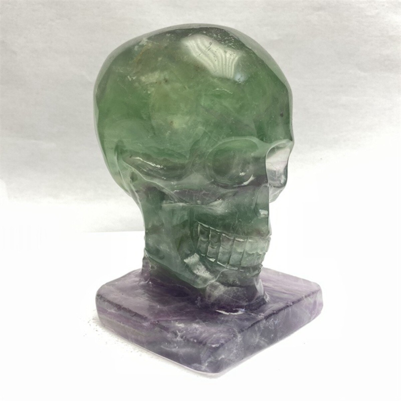 1330g Natural Beantiful Fluorite Quartz Skull Hand Carved Crystal Healing Skull