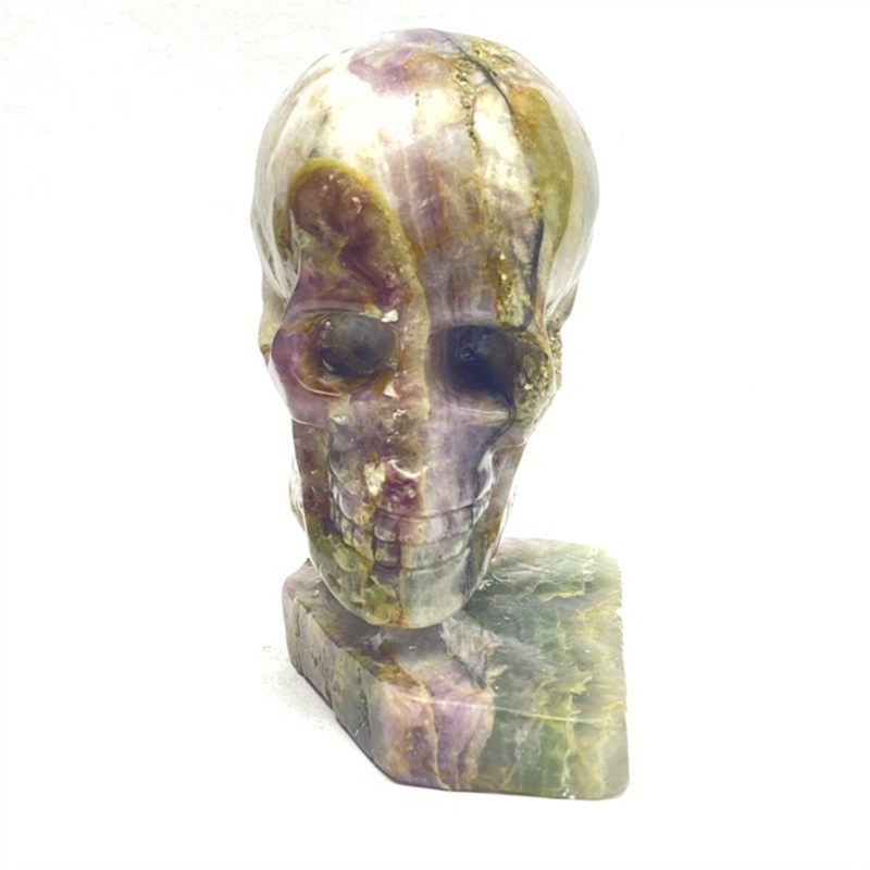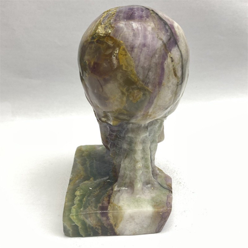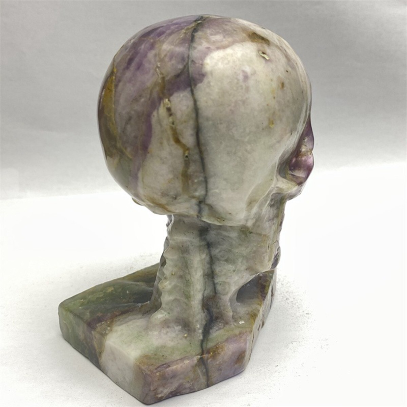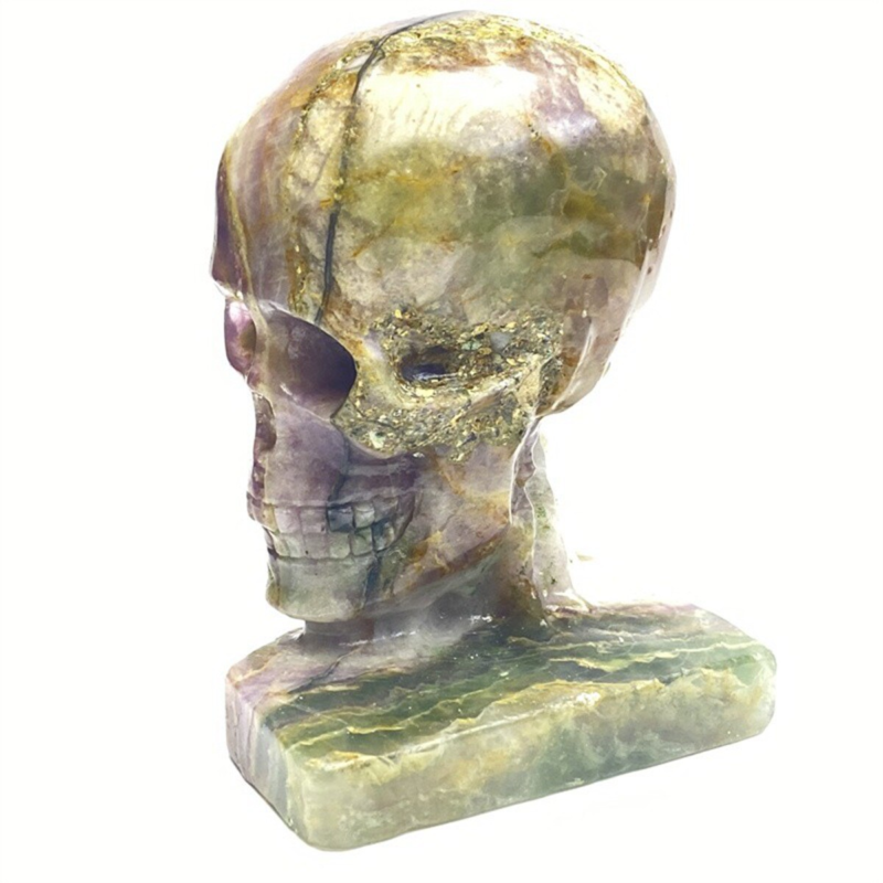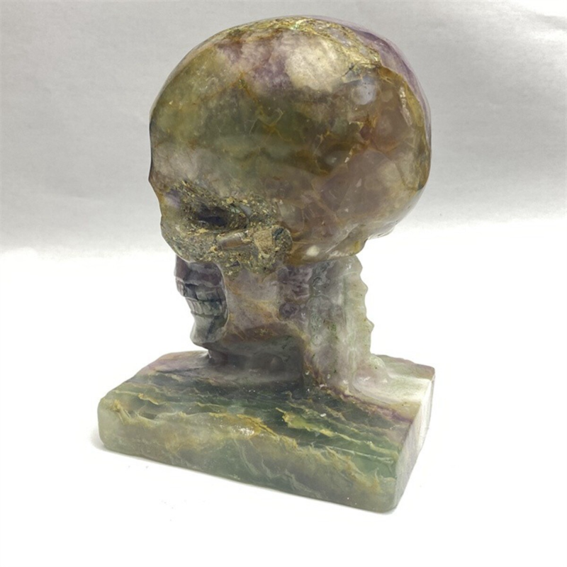 1340g Natural Beantiful Fluorite Quartz Skull Hand Carved Crystal Healing Skull