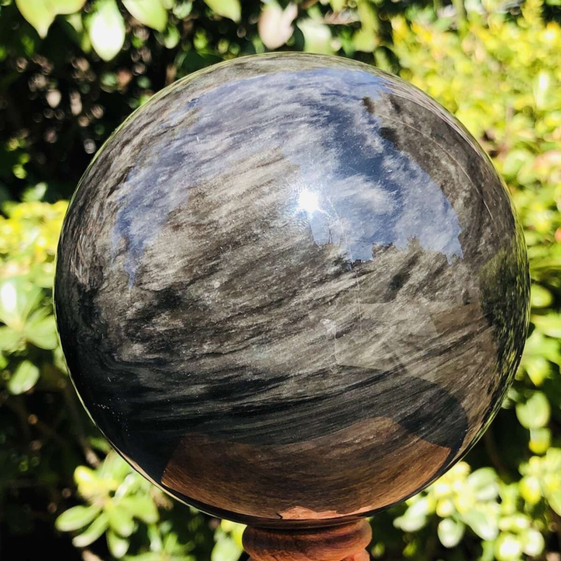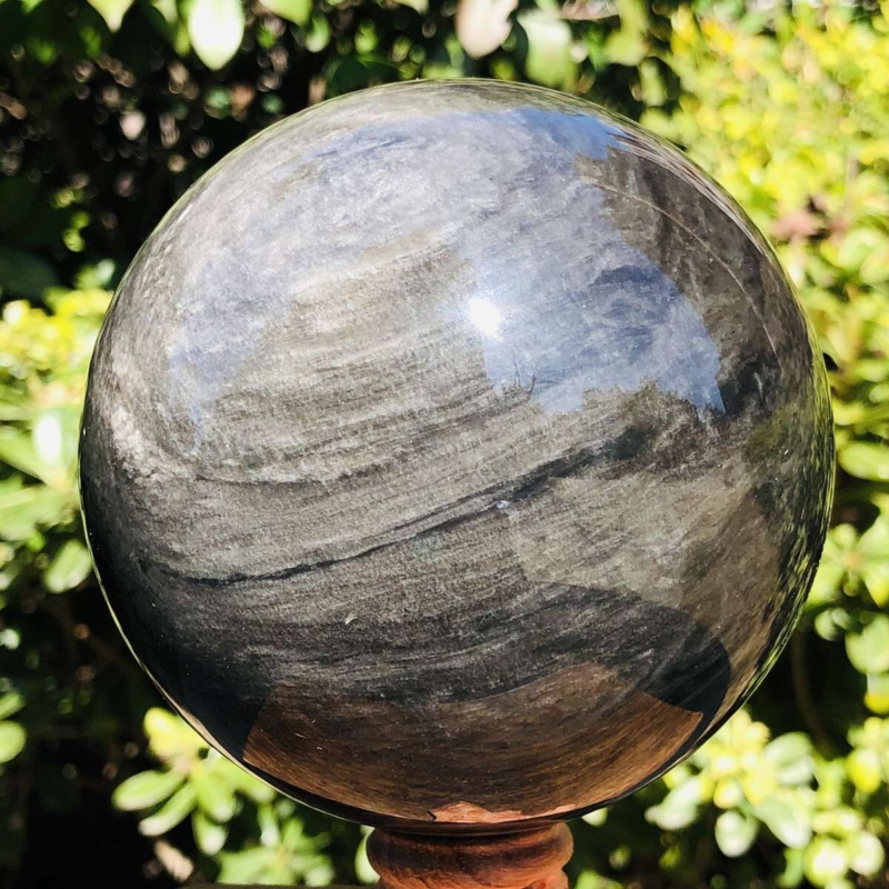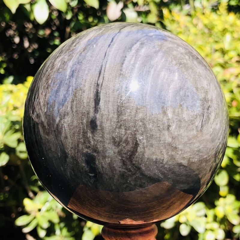 1360G HUGE Natural Silver Obsidian Sphere Crystal quartz Ball Healing 799