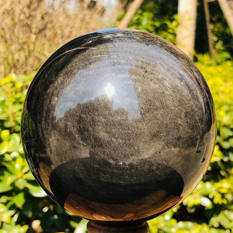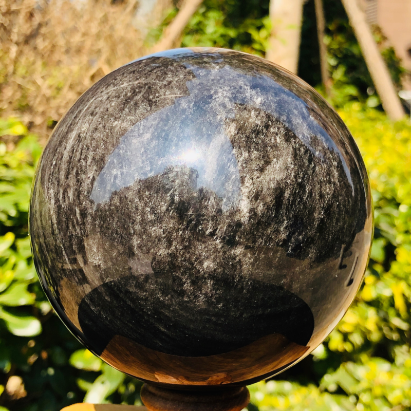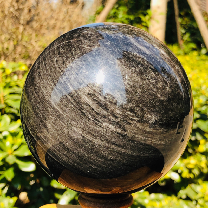 1380g Natural Silver Obsidian Quartz Crystal Ball Sphere Healing HH318
