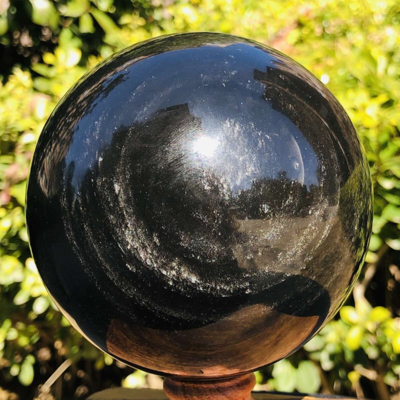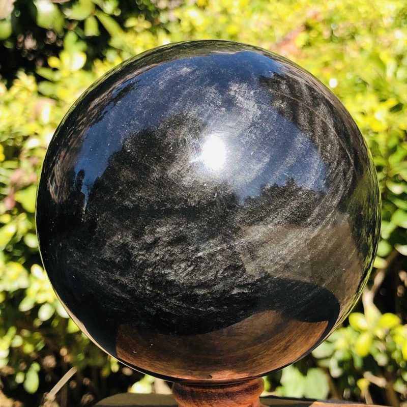 1390G HUGE Natural Silver Obsidian Sphere Crystal quartz Ball Healing 798