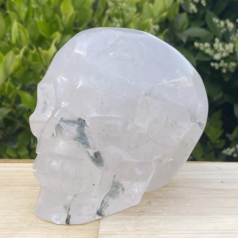 1440g Natural Beantiful Fluorite Quartz Skull Hand Carved Crystal Healing Skull
