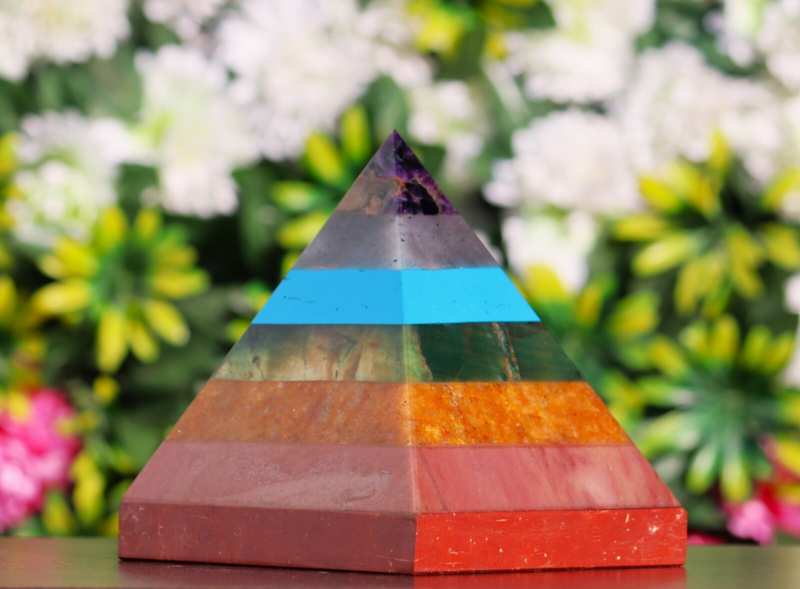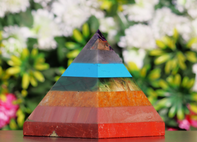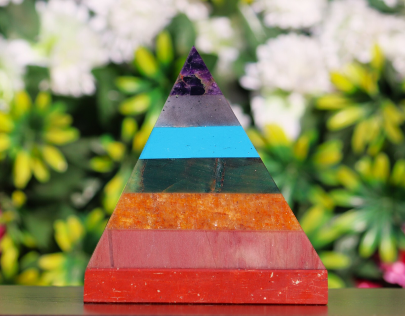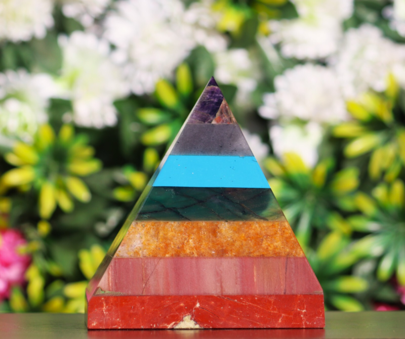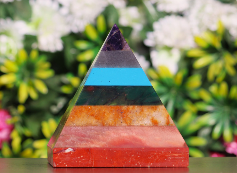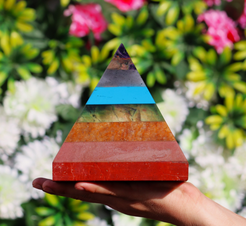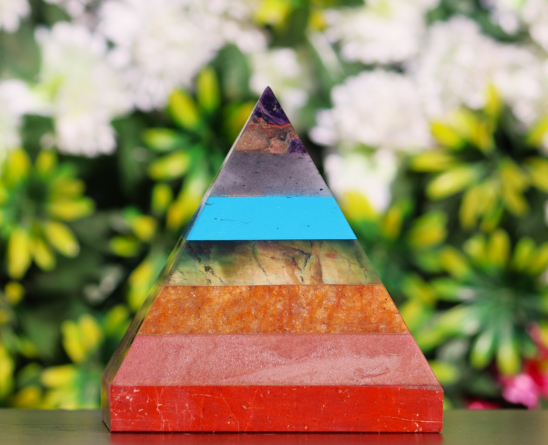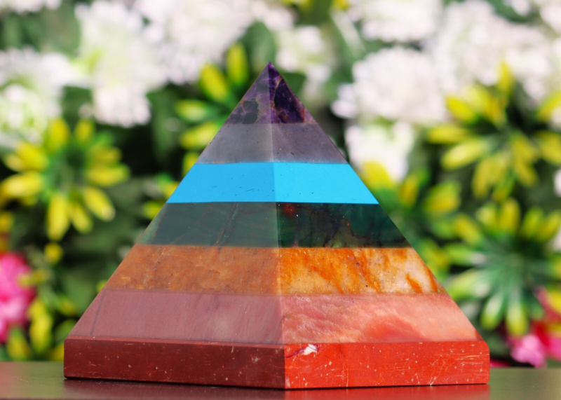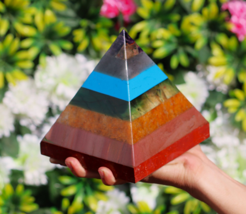 14CM Natural Seven Chakra Aura Healing Power Reiki Spirit Energy Stone Pyramid
