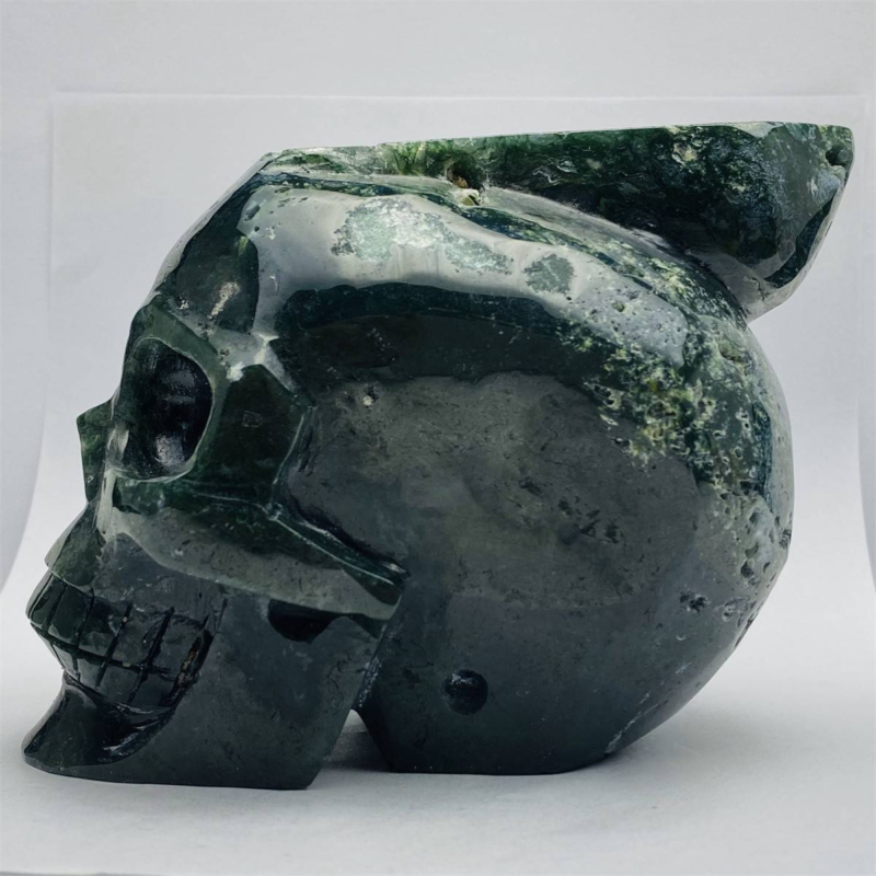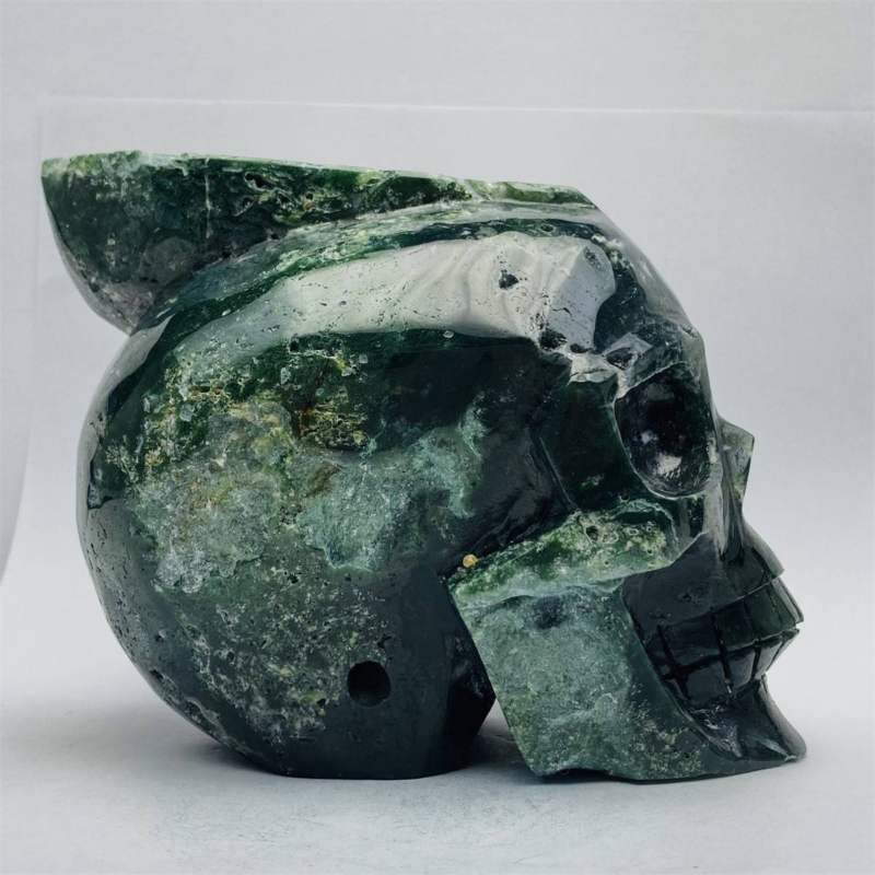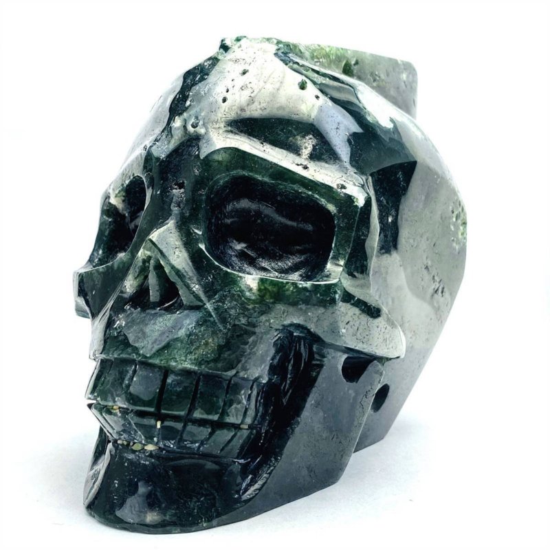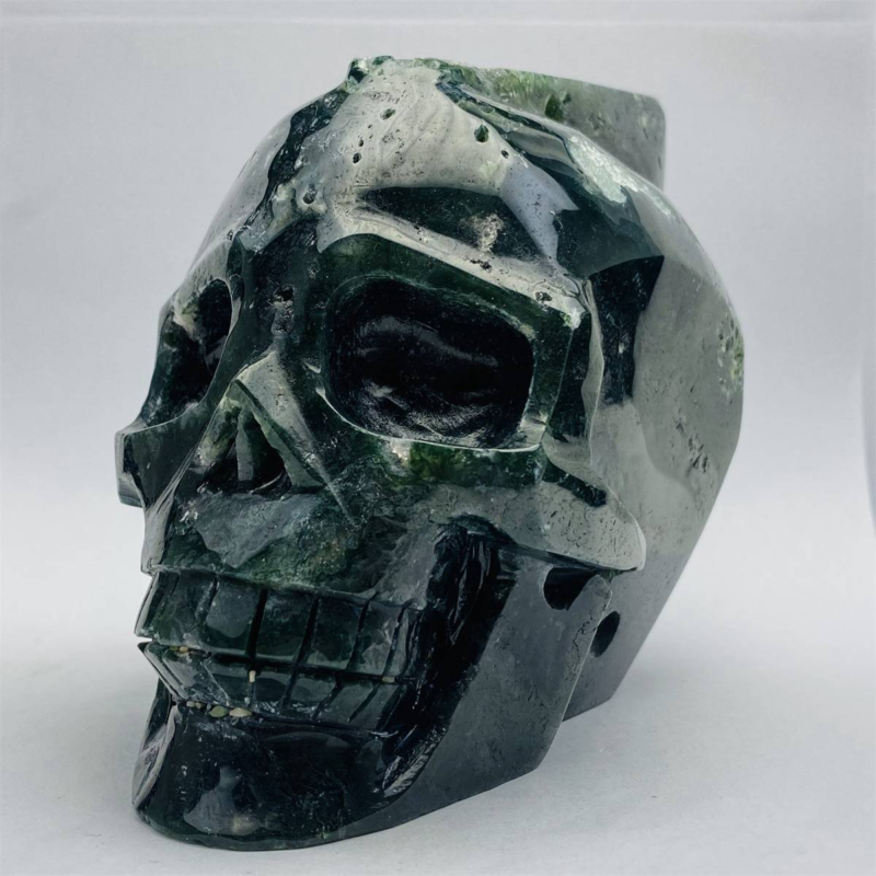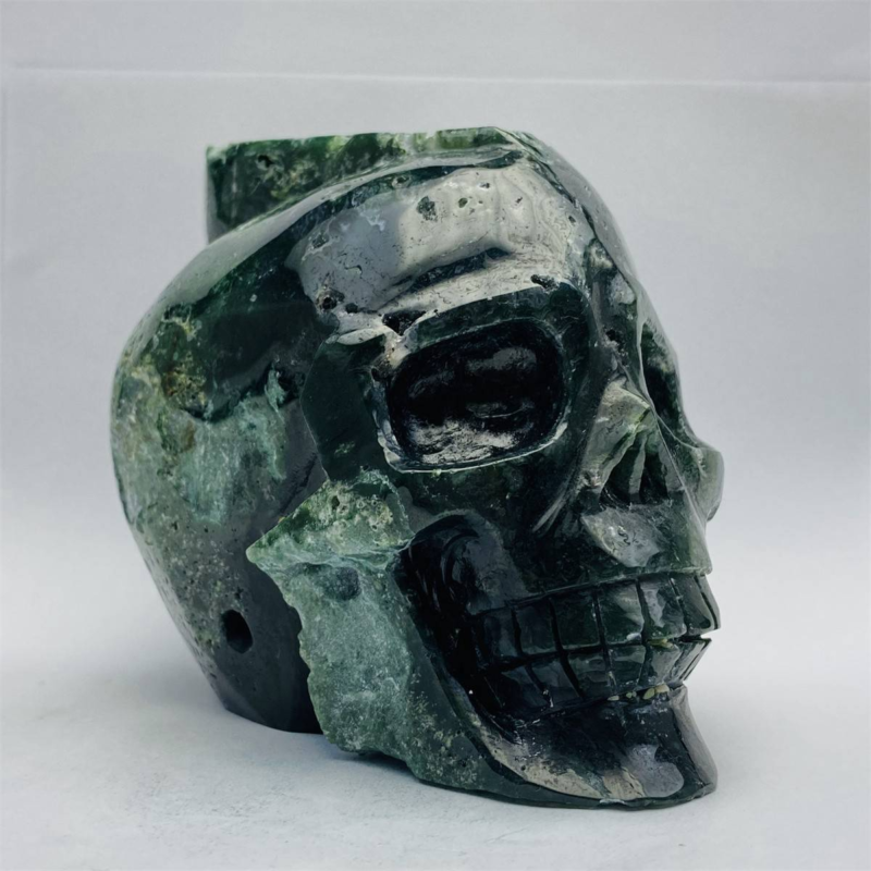 1600g Natural Nice Aquatic agate Quartz Skull Hand Carved Crystal Healing Skull