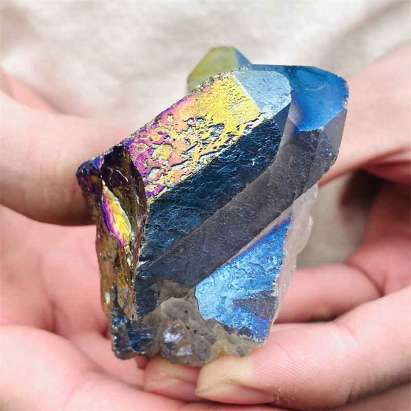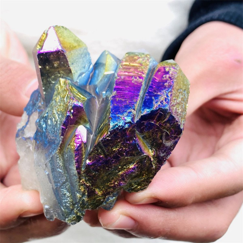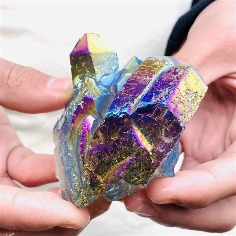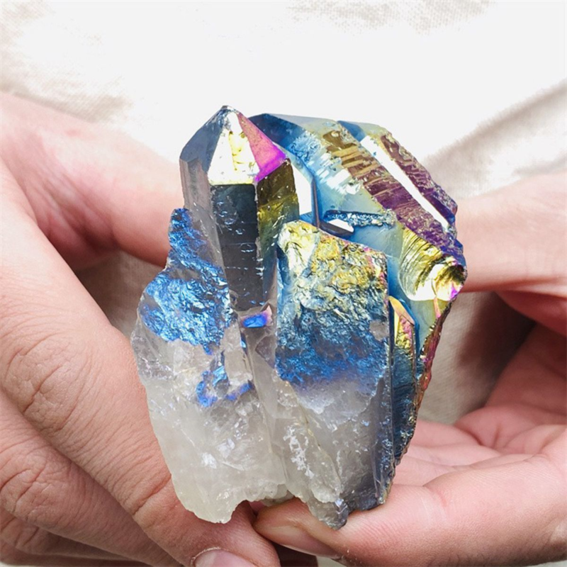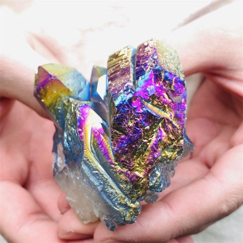160gColor Flame Aura Electroplate Quartz Crystal Cluster Specimen Healing Stone