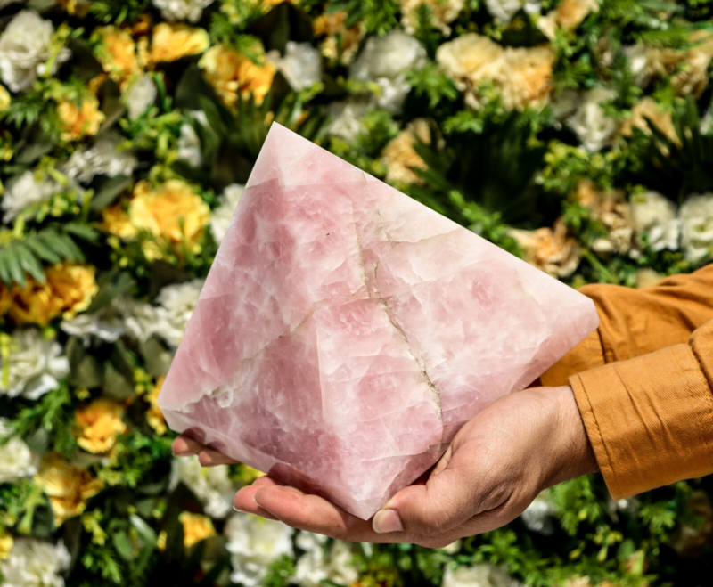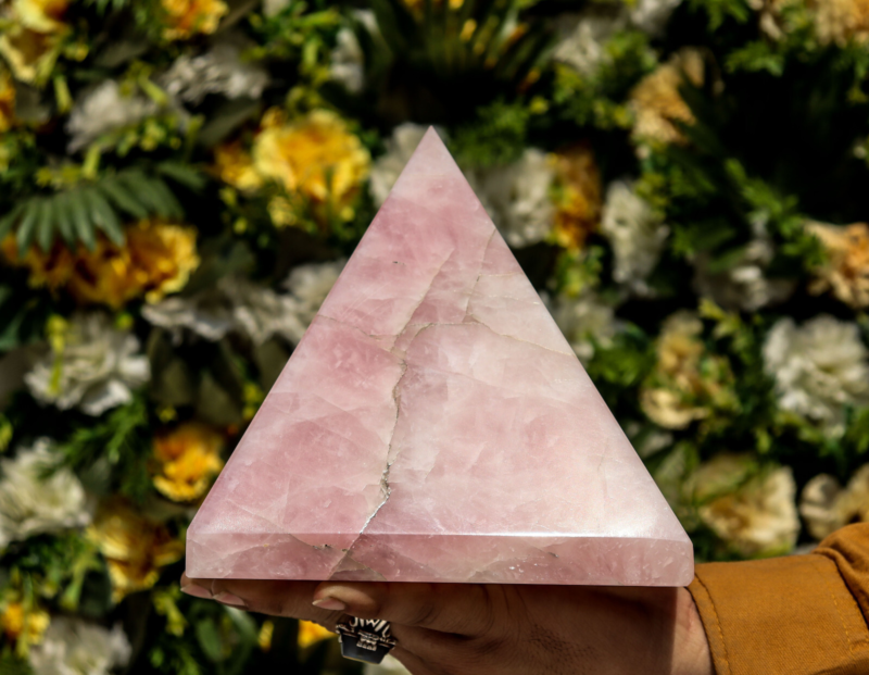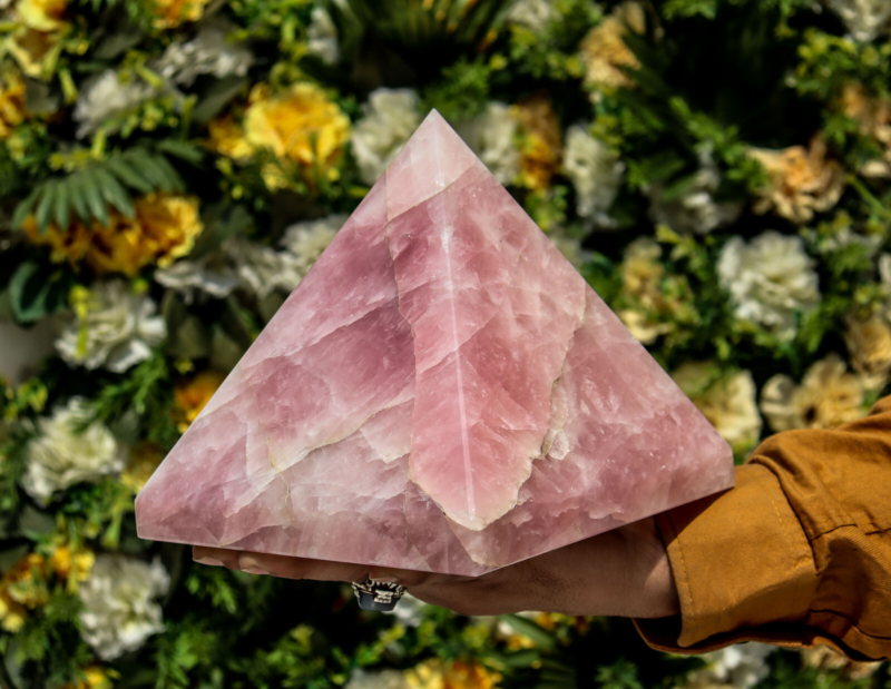 165MM Pink Rose Quartz Crystal Pyramid Aura Healing Chakra Energy Gemstone Point