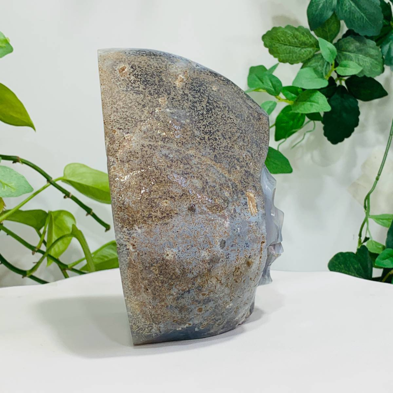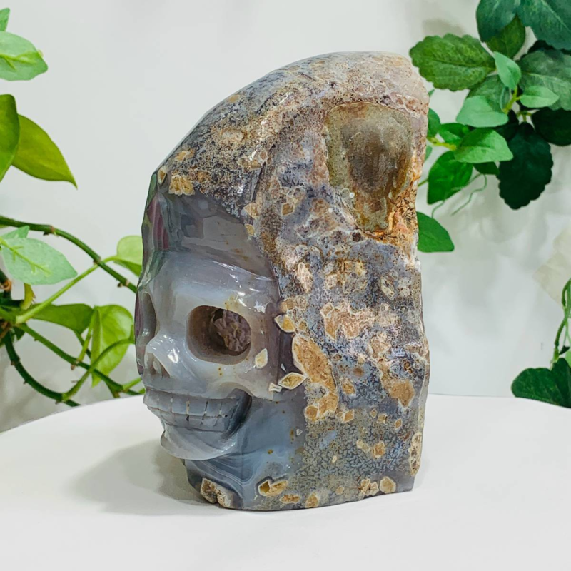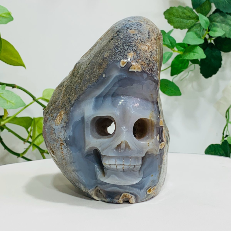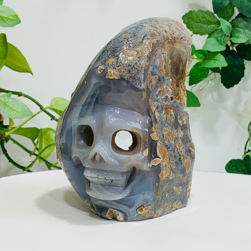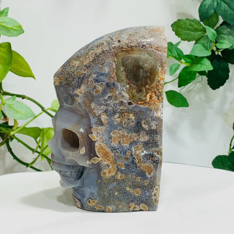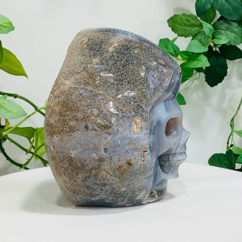 1676g Natural Crystal Jade Hand Carved Quartz Skull Medium Energy Reiki Healing