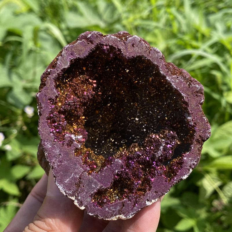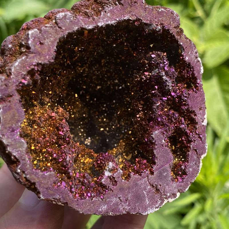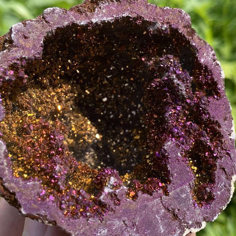 170g Electroplating color Natural Crystal Agate cave ornaments crystal cluster q