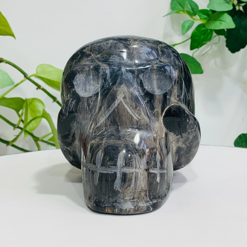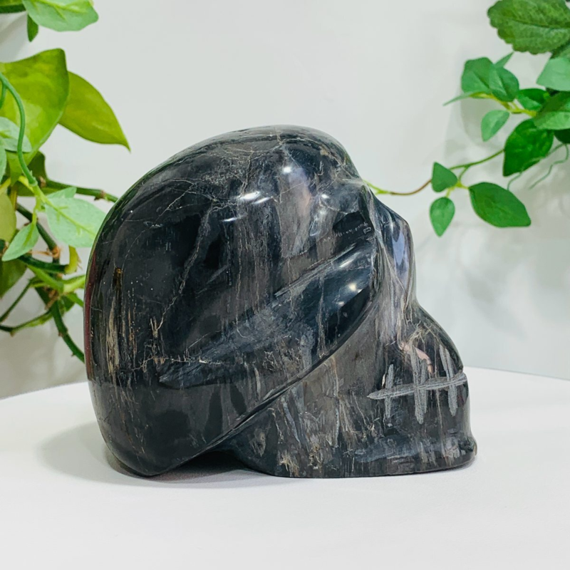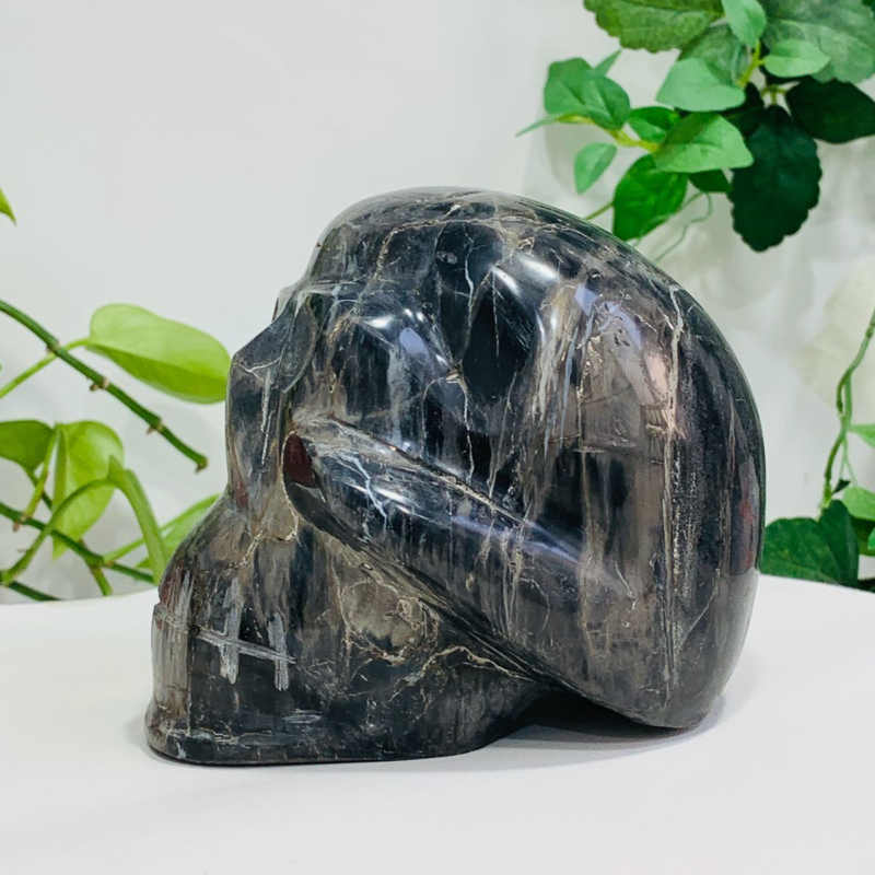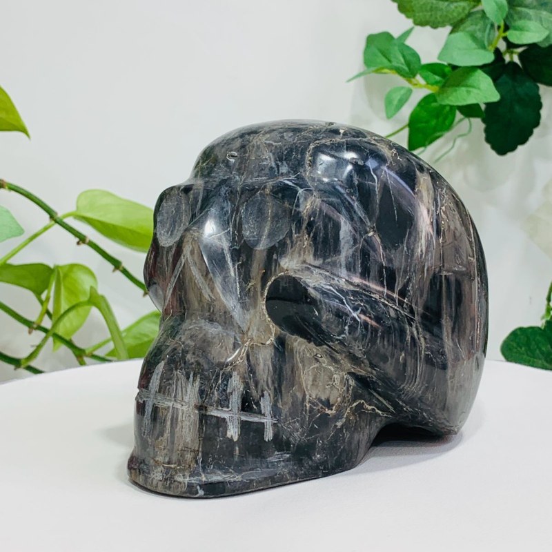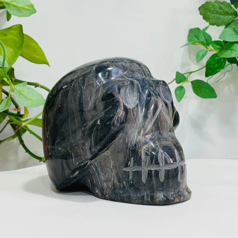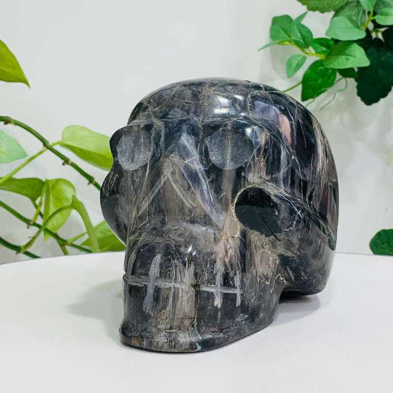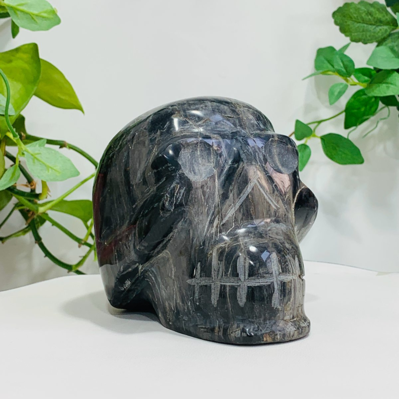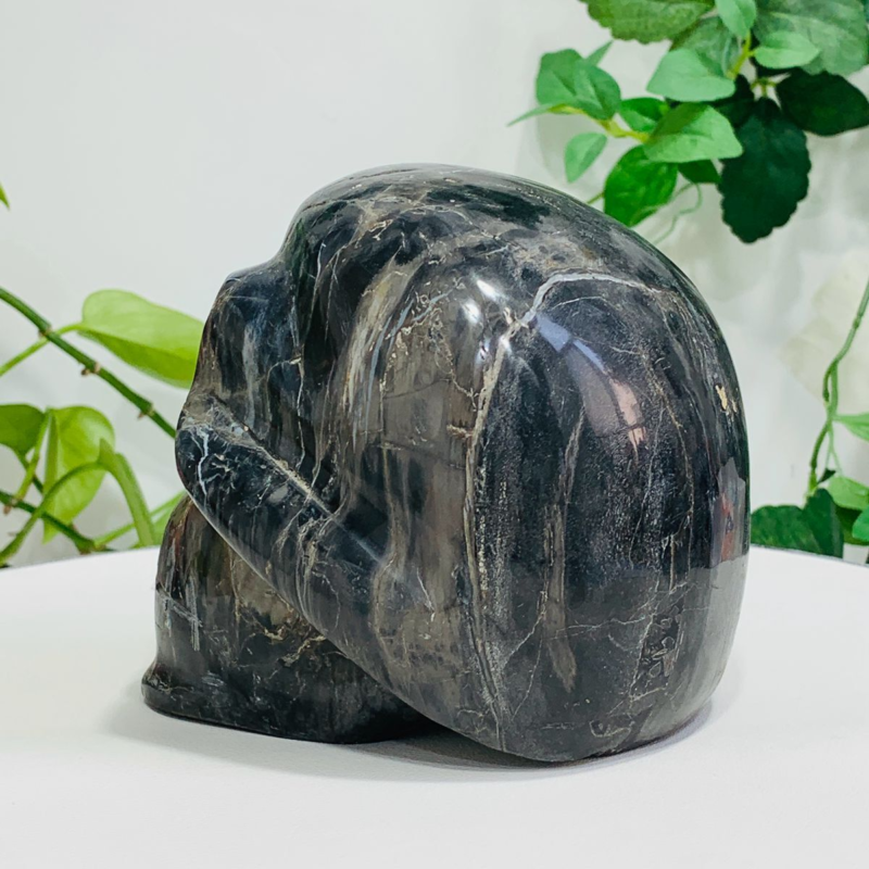 1877g Natural Crystal Jade Hand Carved Quartz Skull Medium Energy Reiki Healing
