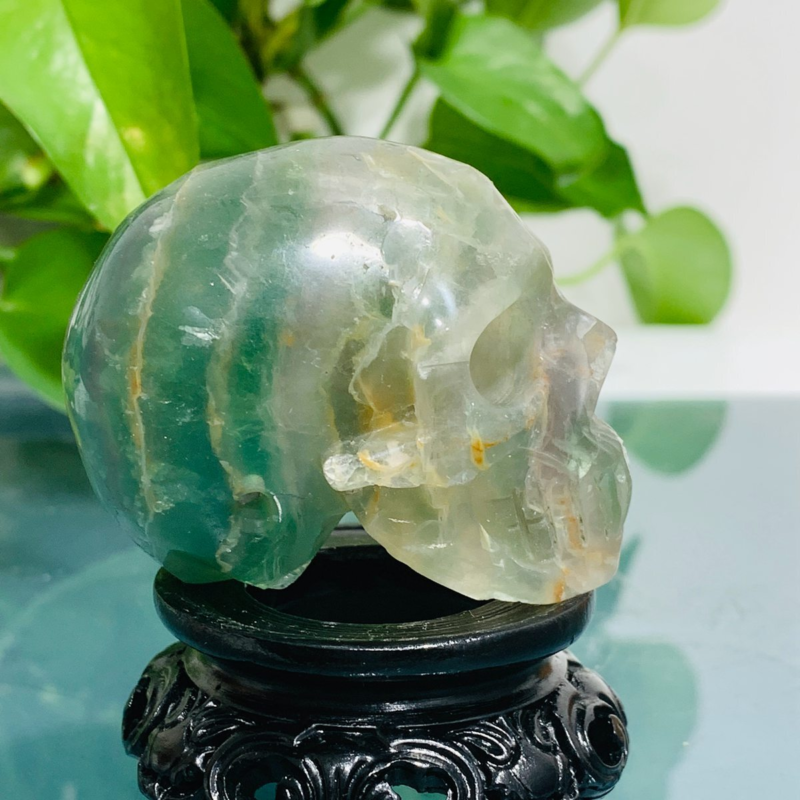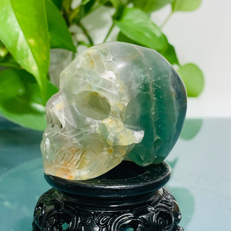 188g Natural Colourful Fluorite Hand Carved Crystal Skull Meditation Medium