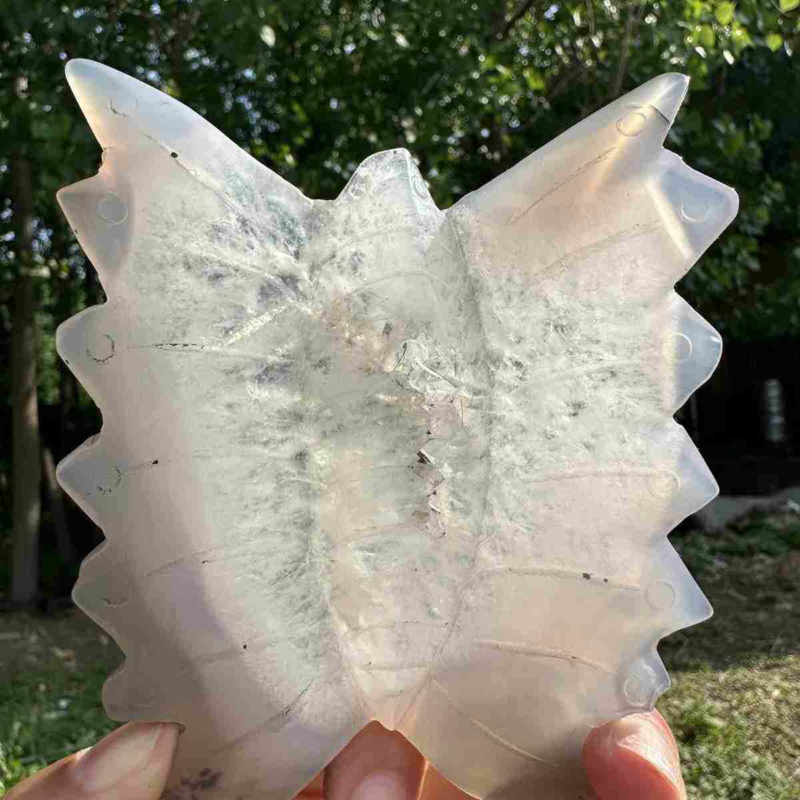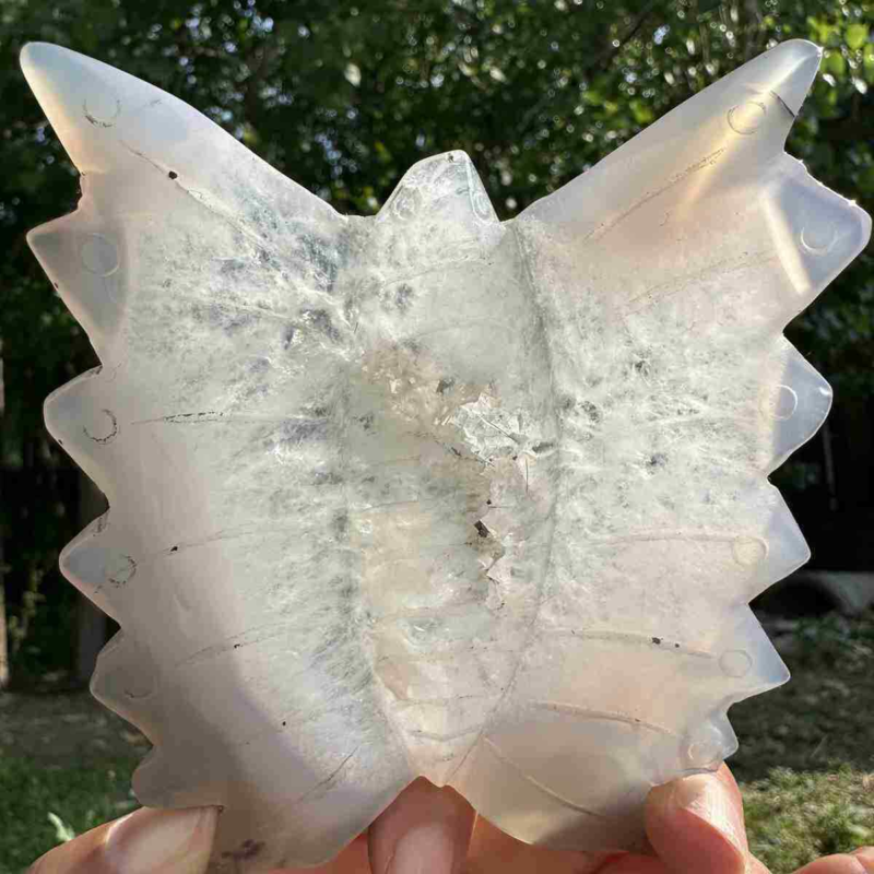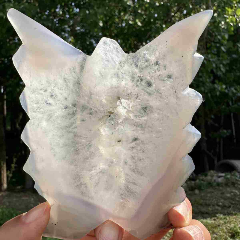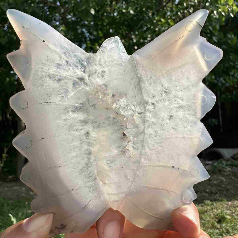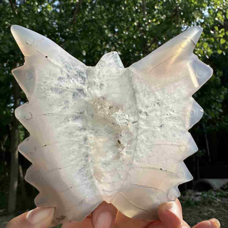 190g natural agate hand carved butterfly skull quartz crystal cluster reiki