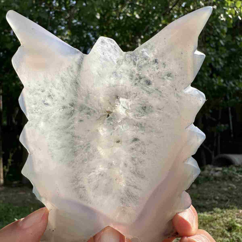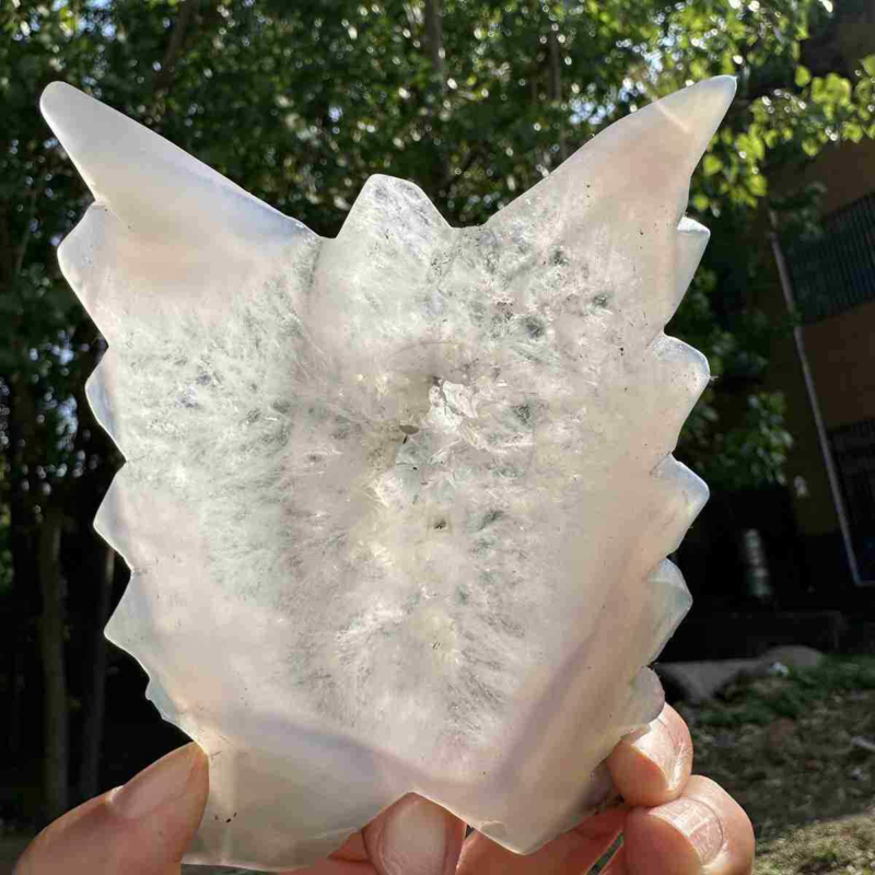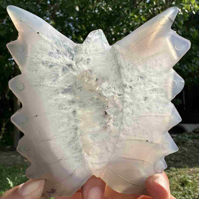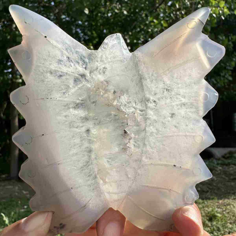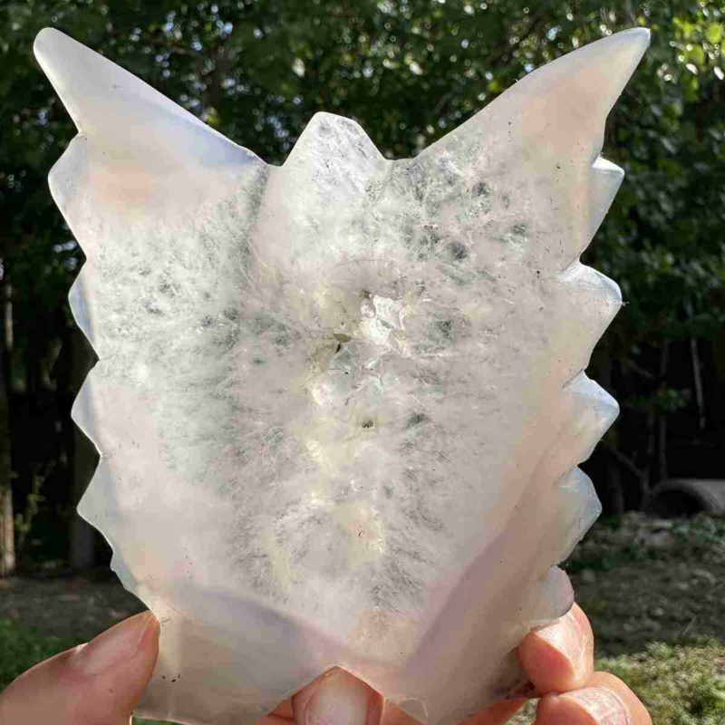 190g natural agate hand carved butterfly skull quartz crystal cluster reiki