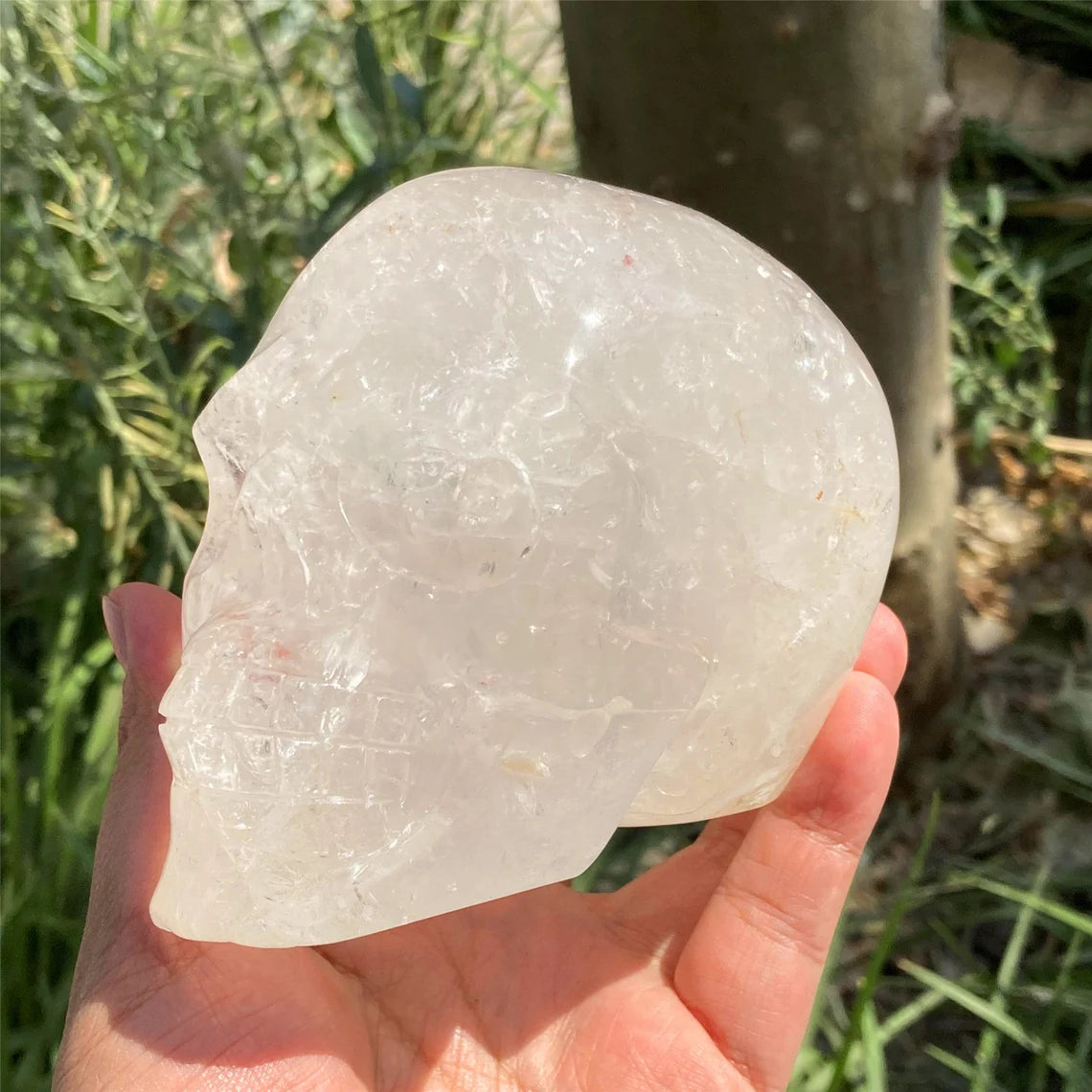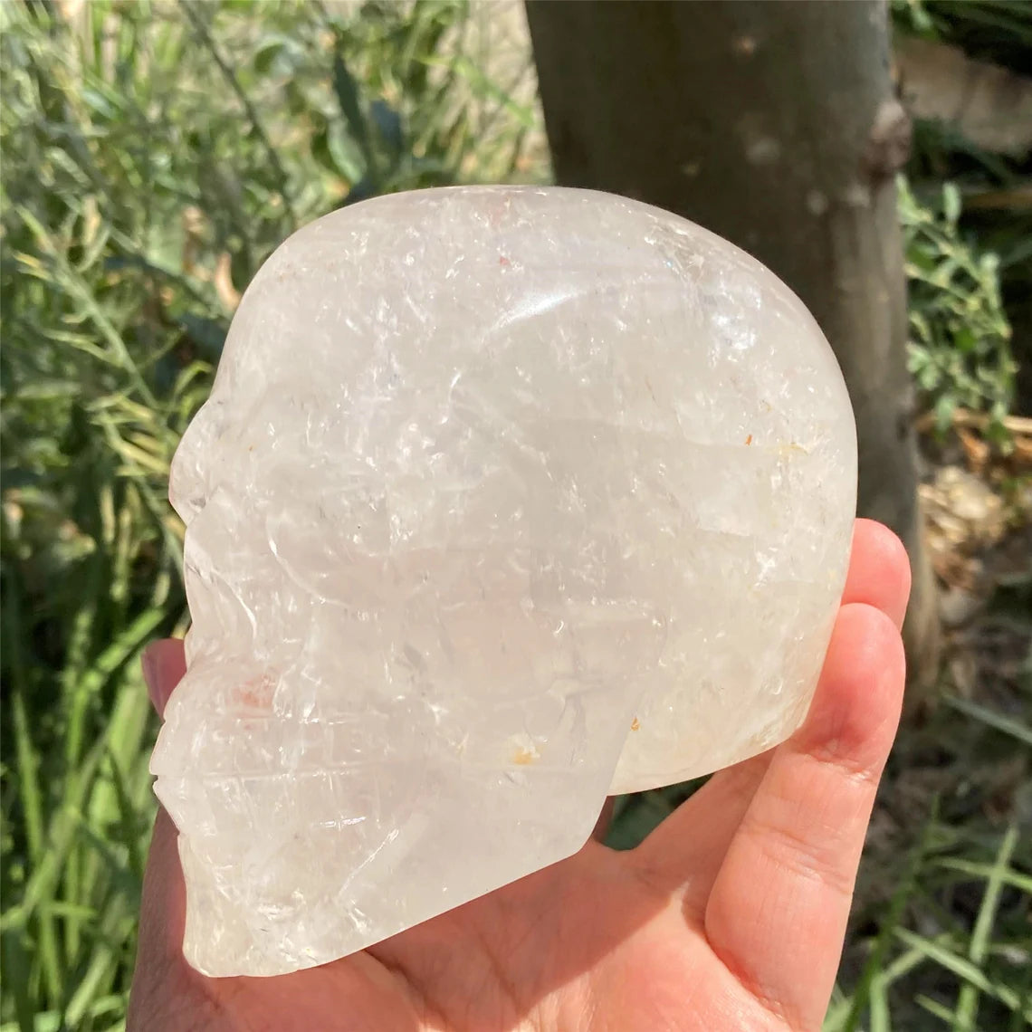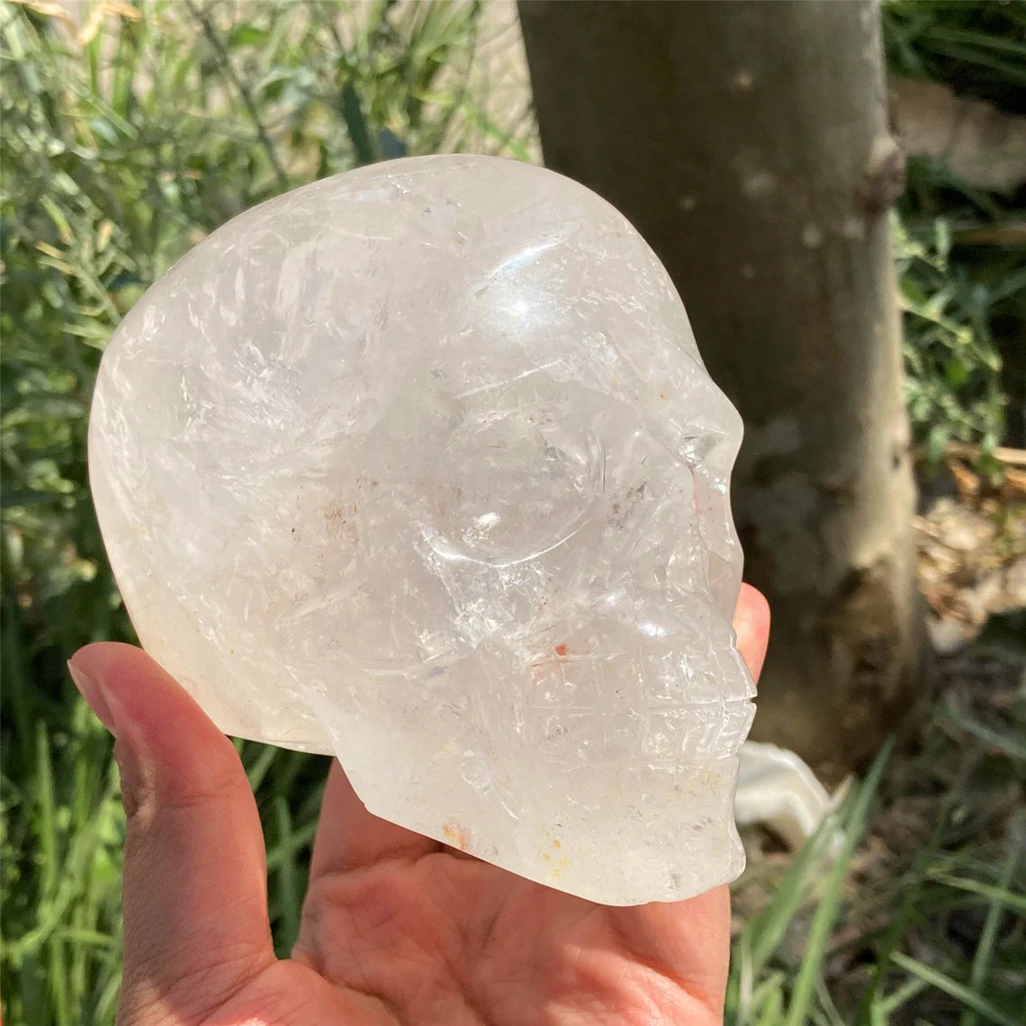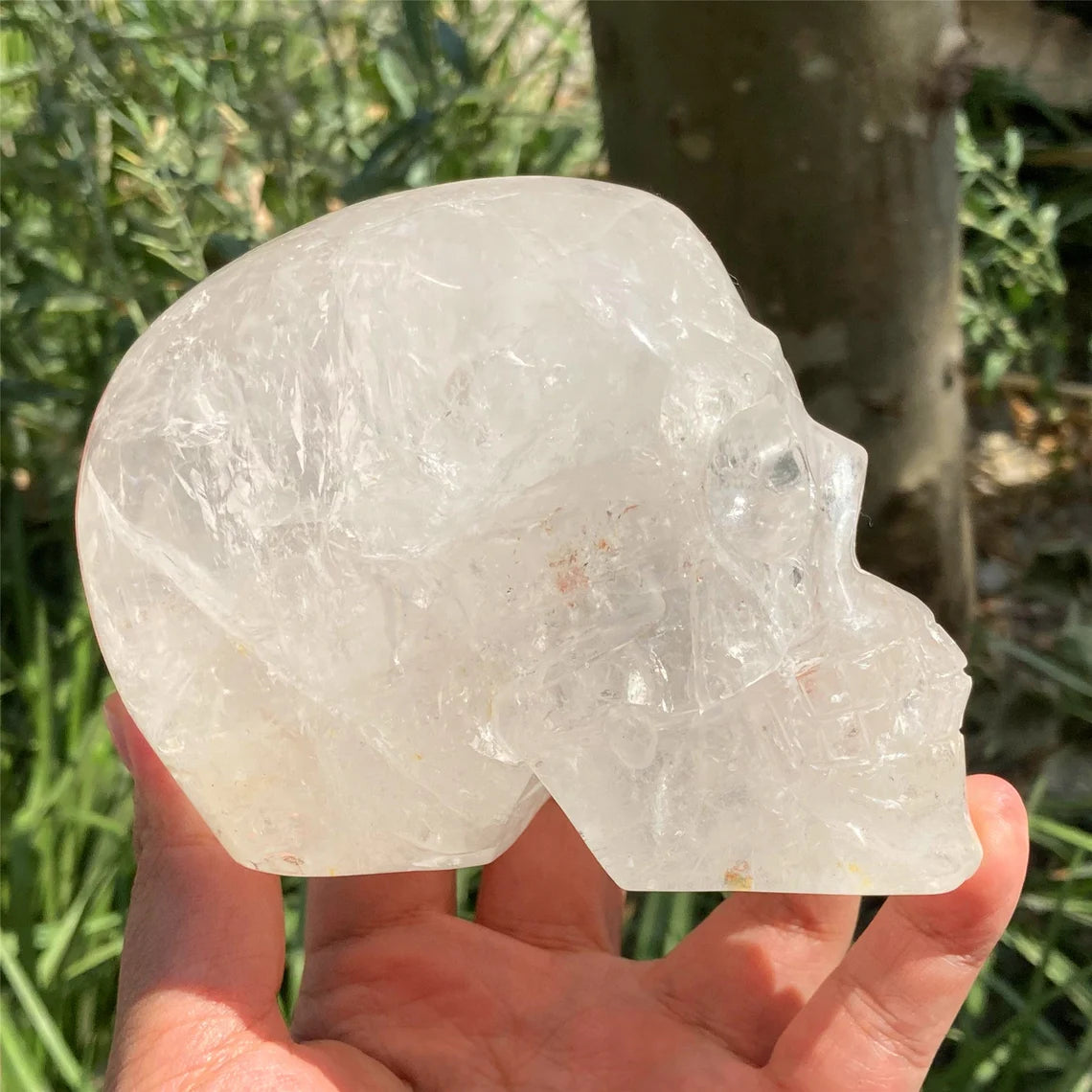 1PC 4"+ Natural Hand Clear Quartz Skull,Quartz Clear Crystal Skull Carved ,Home Decoration,Mineral Specimen,Crystal Reiki Healing Gifts