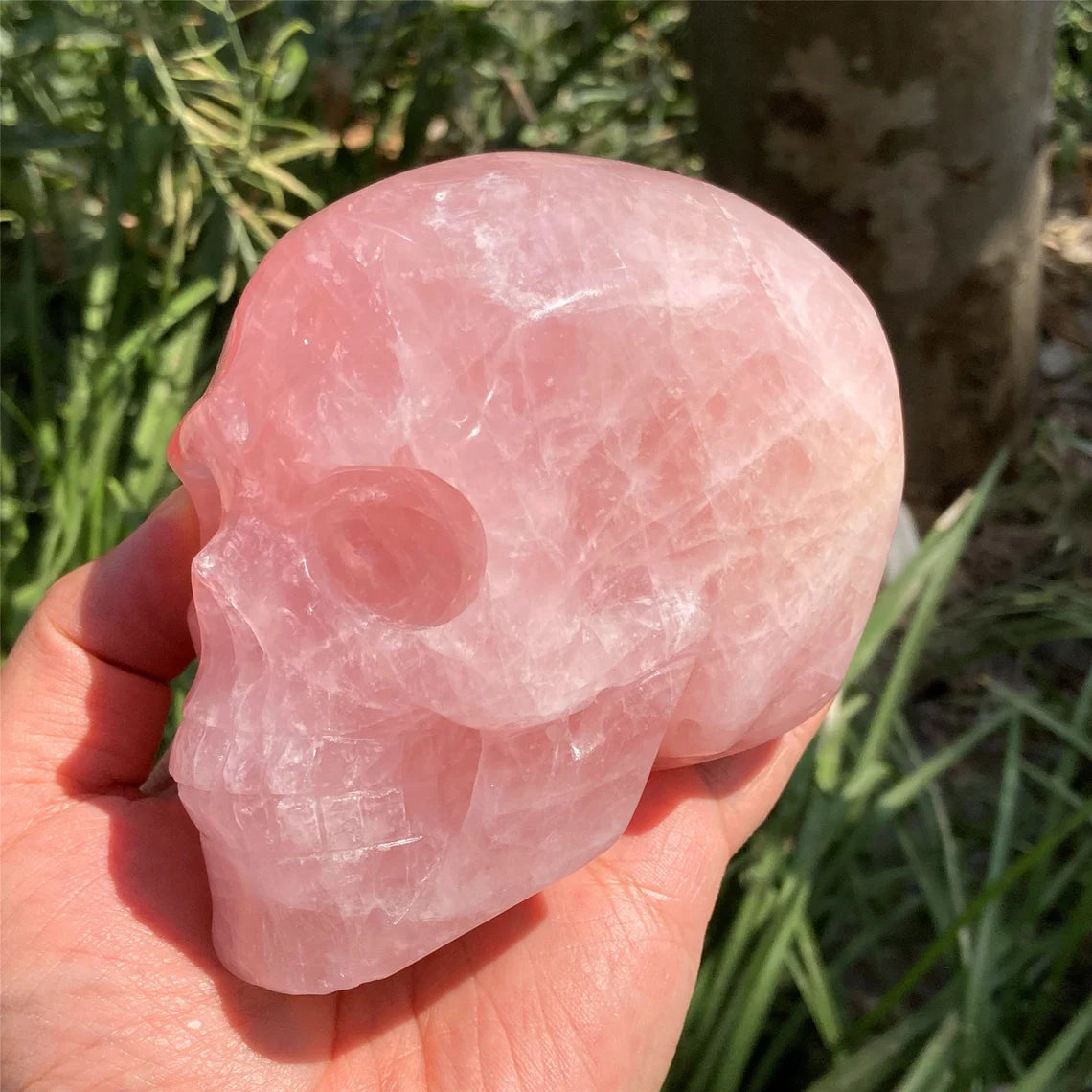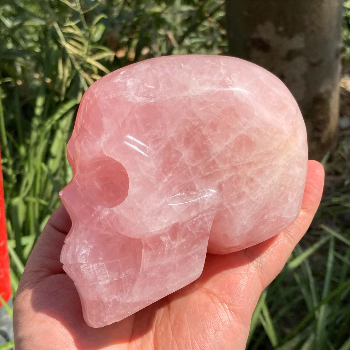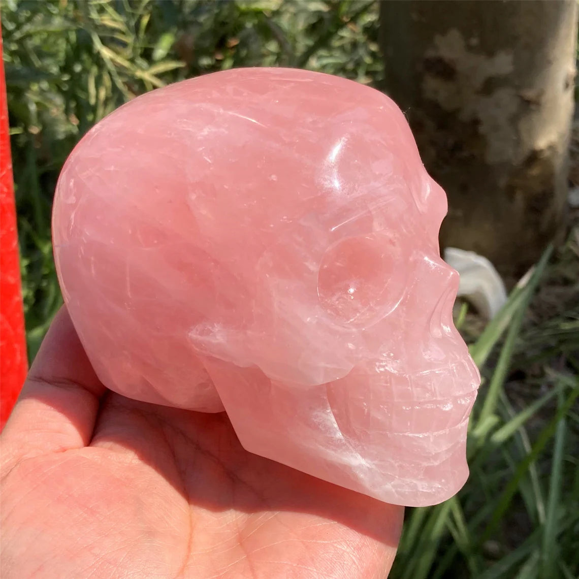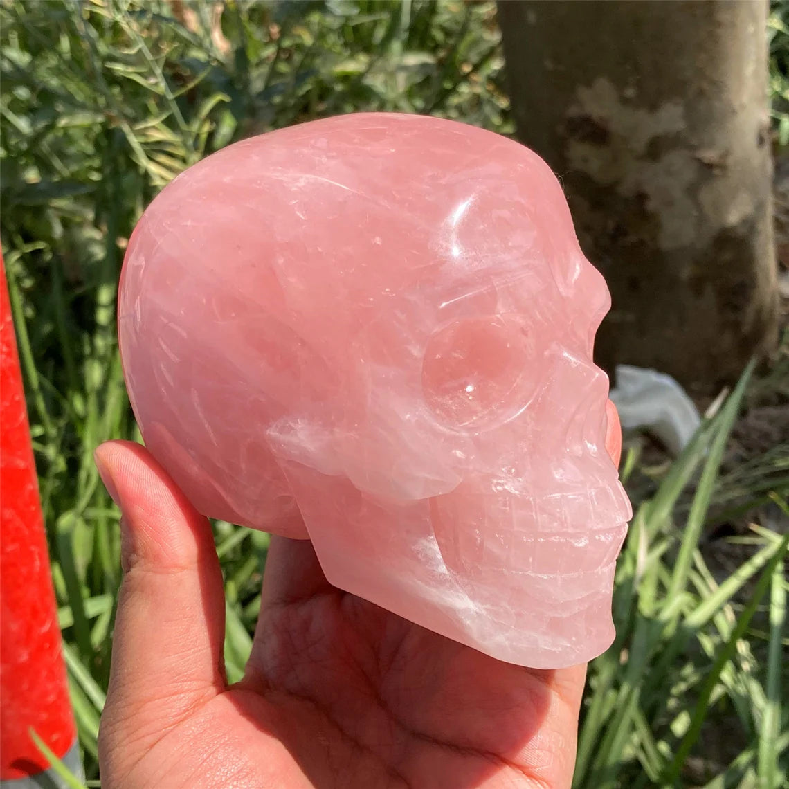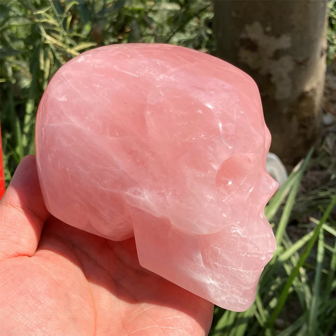 1PC 4"+ Natural Hand Rose Quartz Skull,Quartz Pink Crystal Skull Carved ,Home Decoration,Mineral Specimen,Crystal Reiki Healing Gift