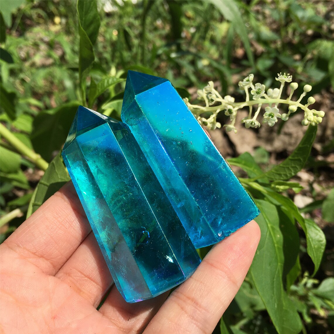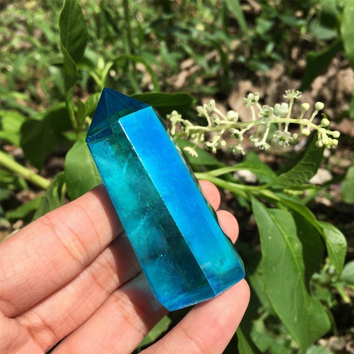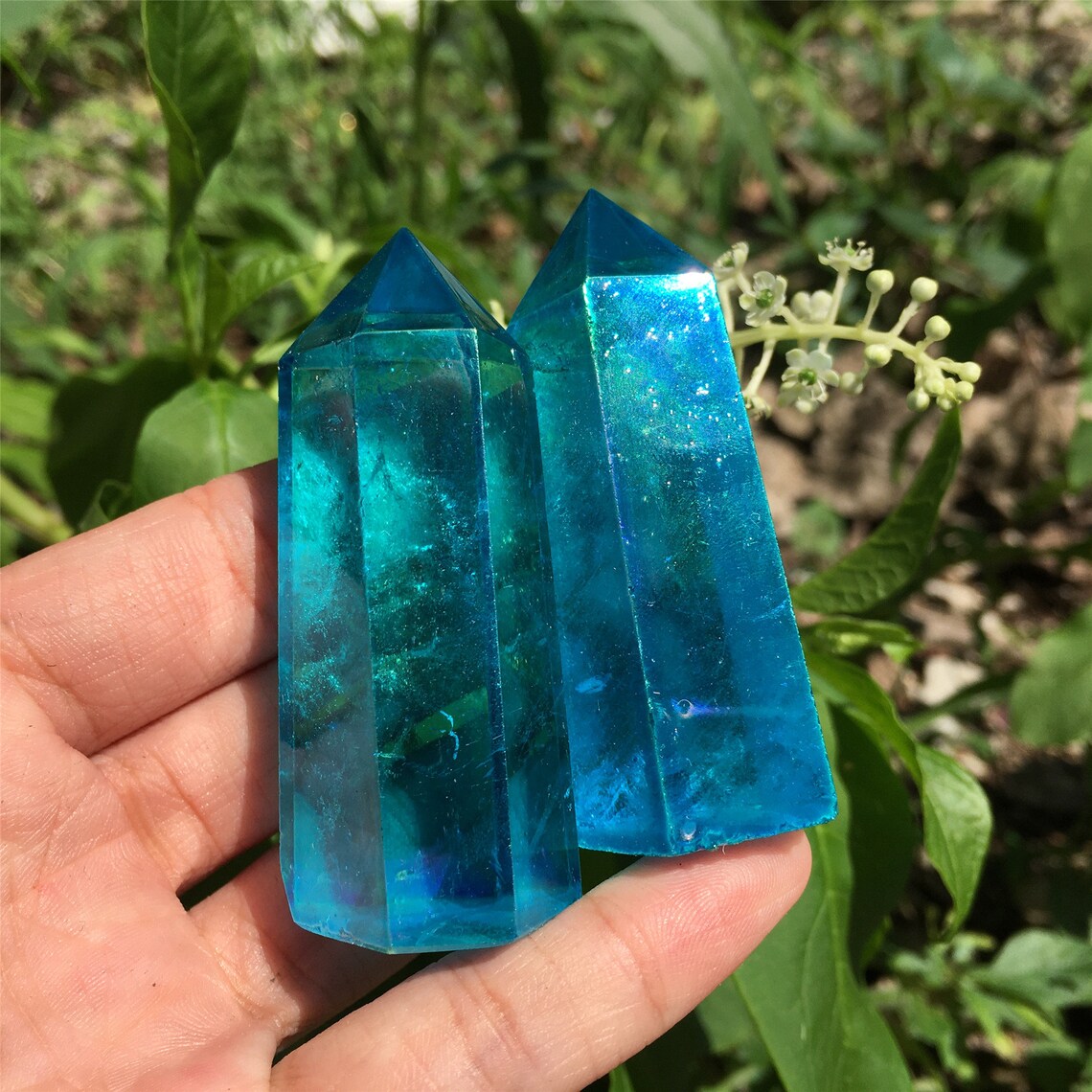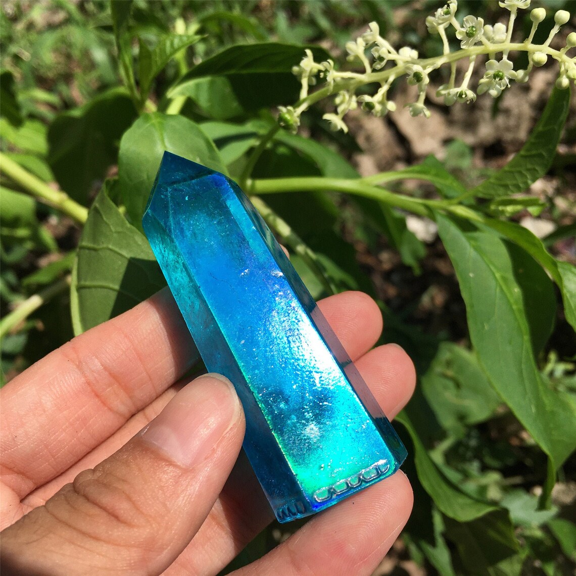 1PC Blue Titanium Rainbow Obelisk,Quartz Crystal Wand Piont,Crystal Tower,Mineral specimens,Home Decoration,Reiki Heal,Crystal Gifts 50g+