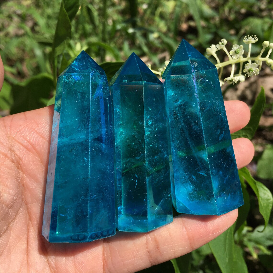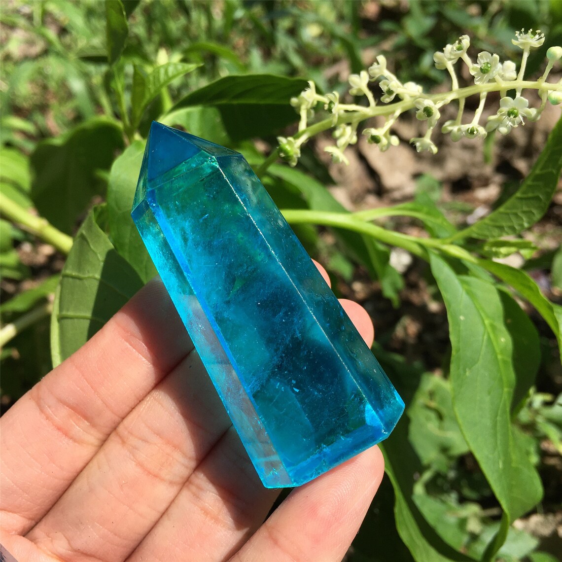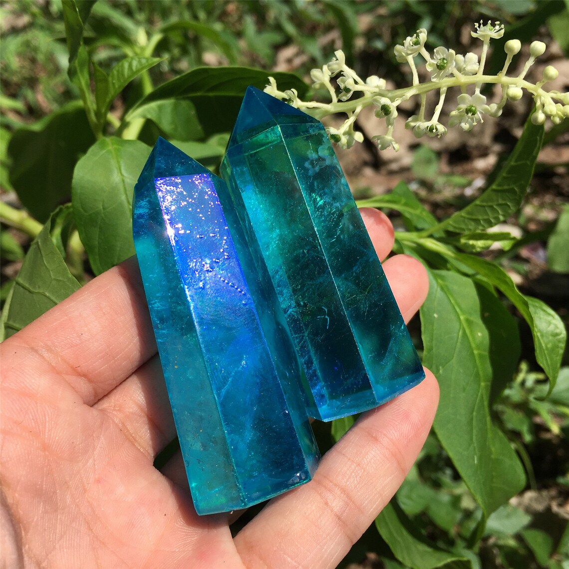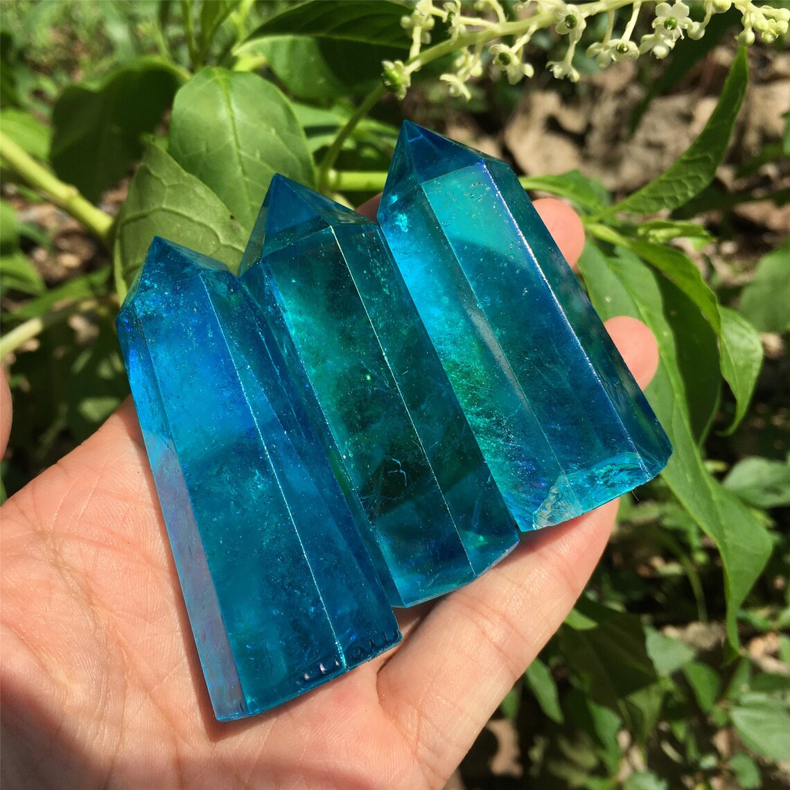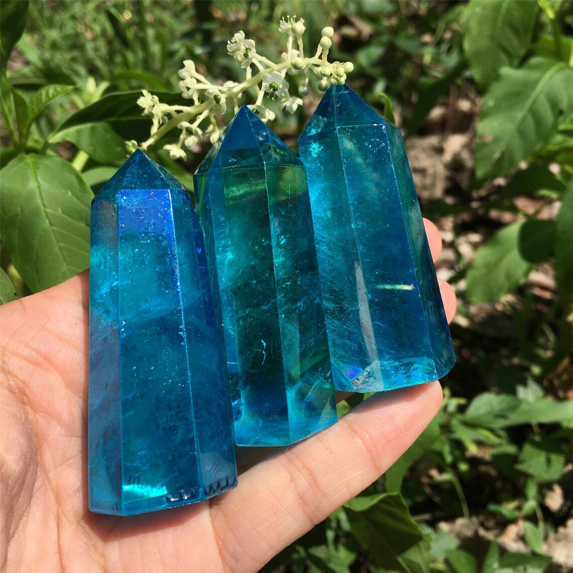 1PC Blue Titanium Rainbow Obelisk,Quartz Crystal Wand Piont,Crystal Tower,Mineral specimens,Home Decoration,Reiki Heal,Crystal Gifts 50g+