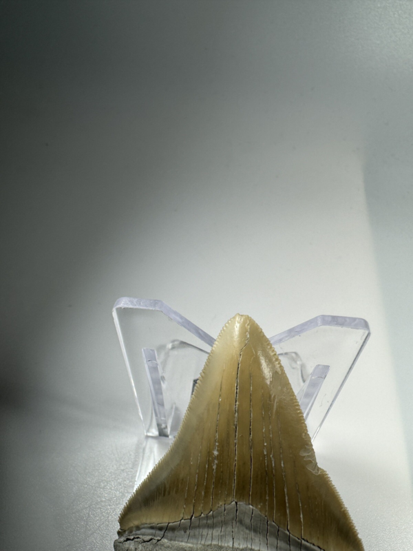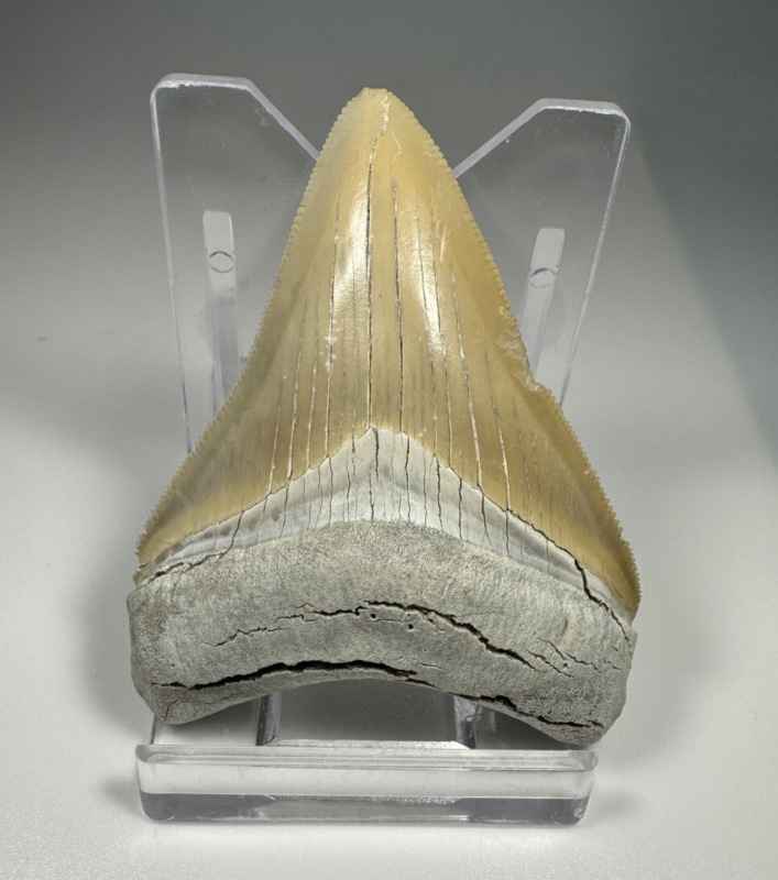 Unique colored Megalodon shark tooth fossil from Aurora North Carolina (Lee Creek), Yorktown formation. It’s Miocene in age.
