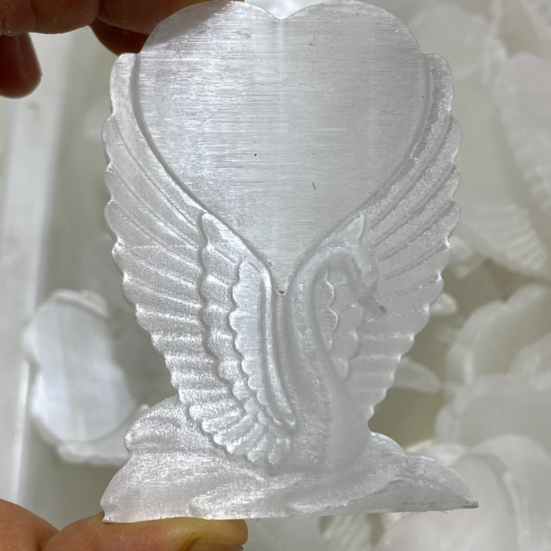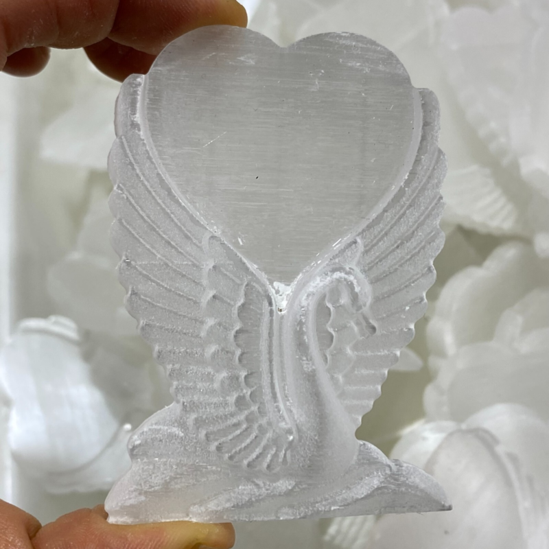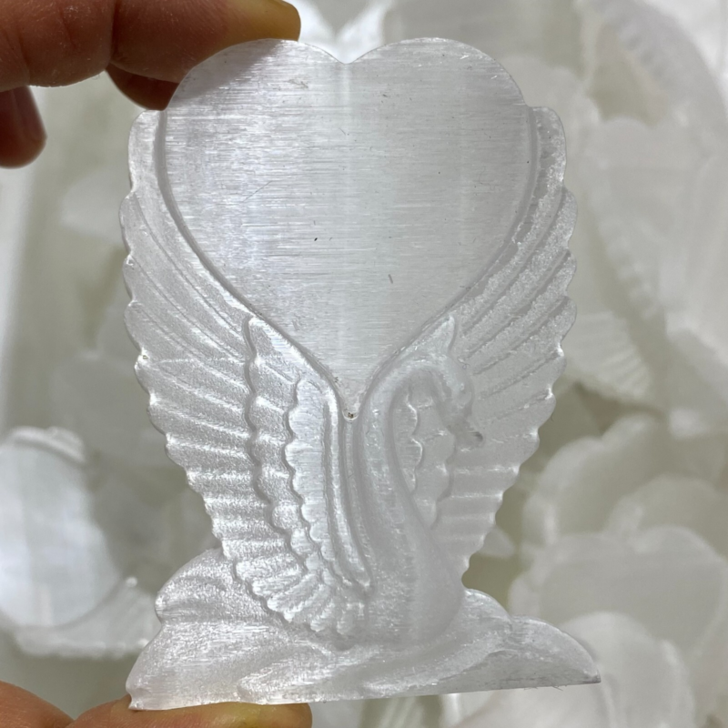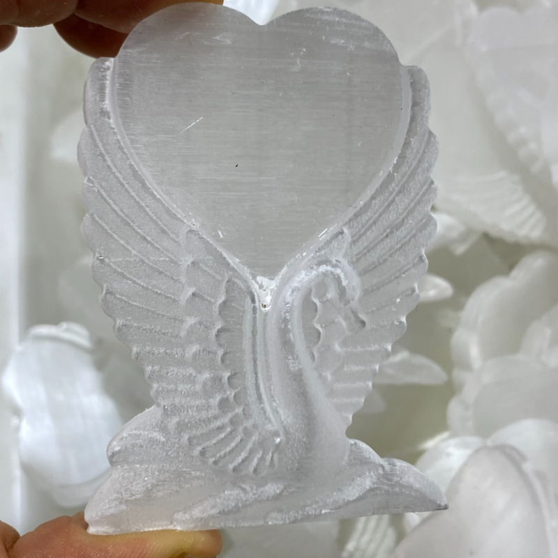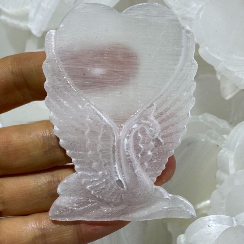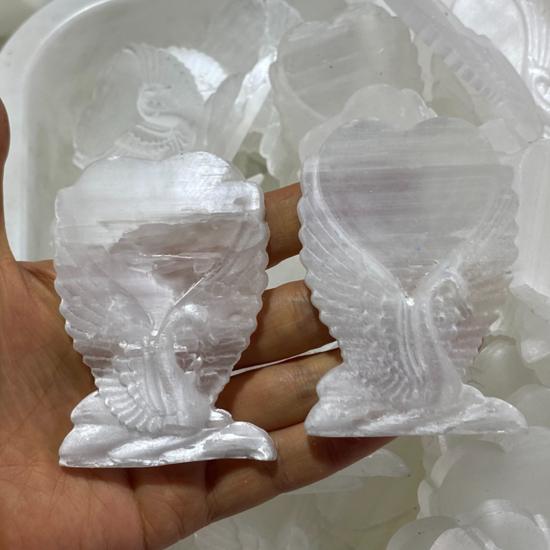 2.5”+ Natural Gypsum Selenite swan Hand Carved Quartz Crystal Reiki healing 1PC
