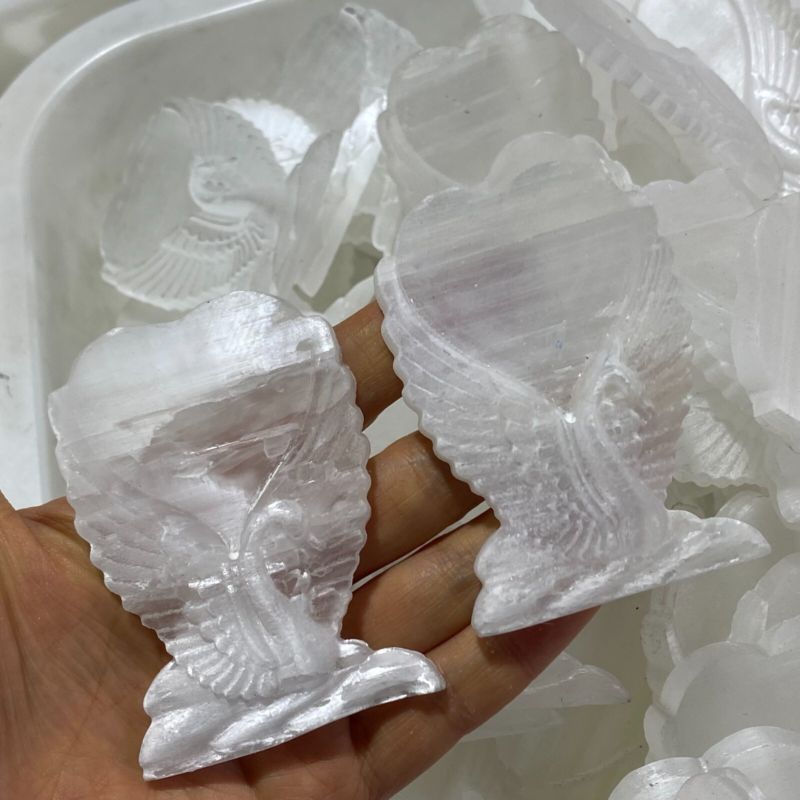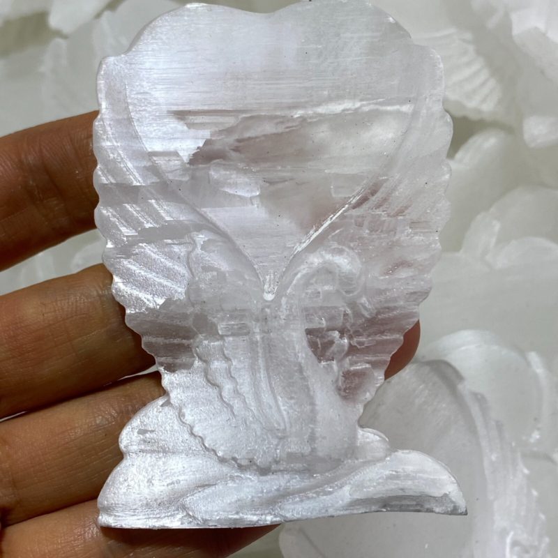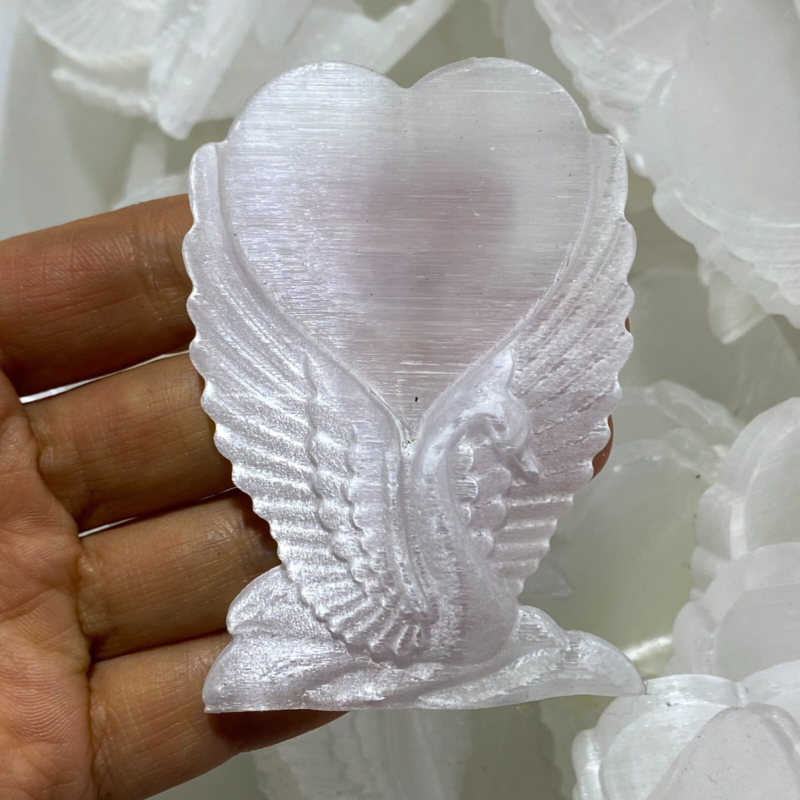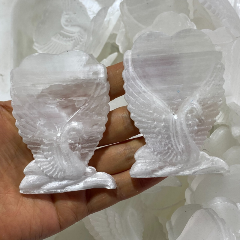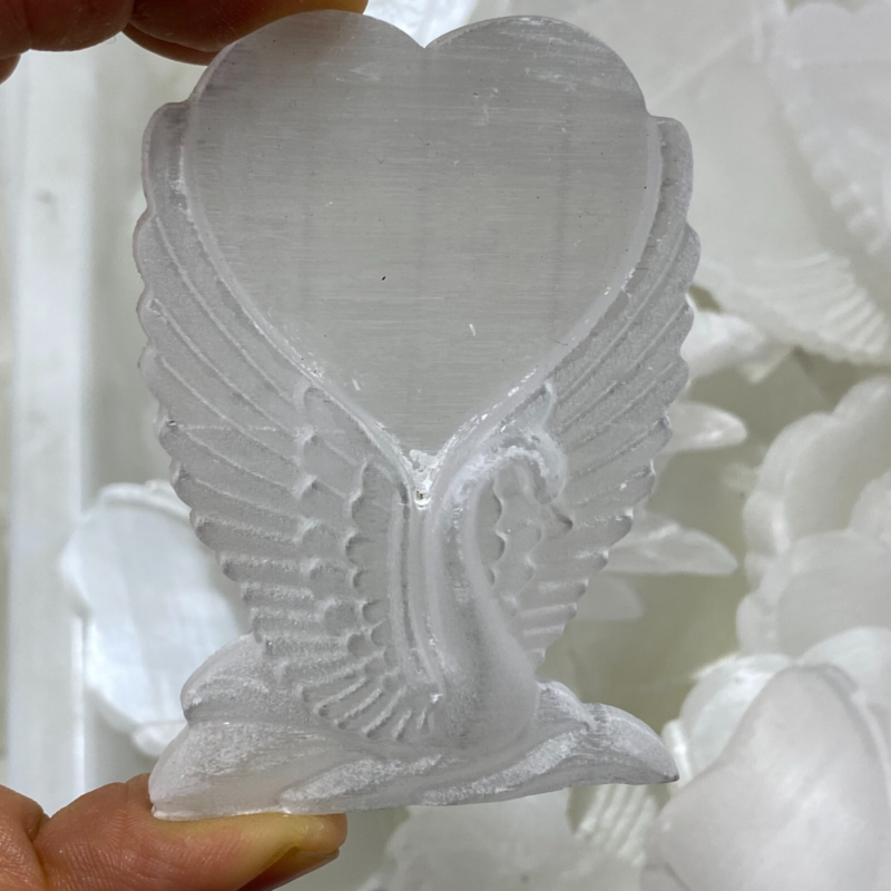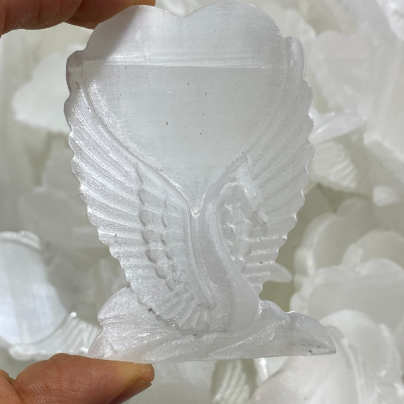 2.5”+ Natural Gypsum Selenite swan Hand Carved Quartz Crystal Reiki healing 1PC