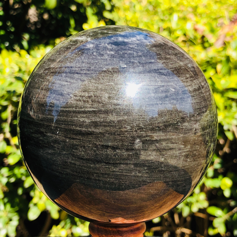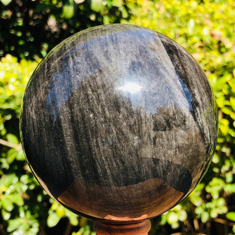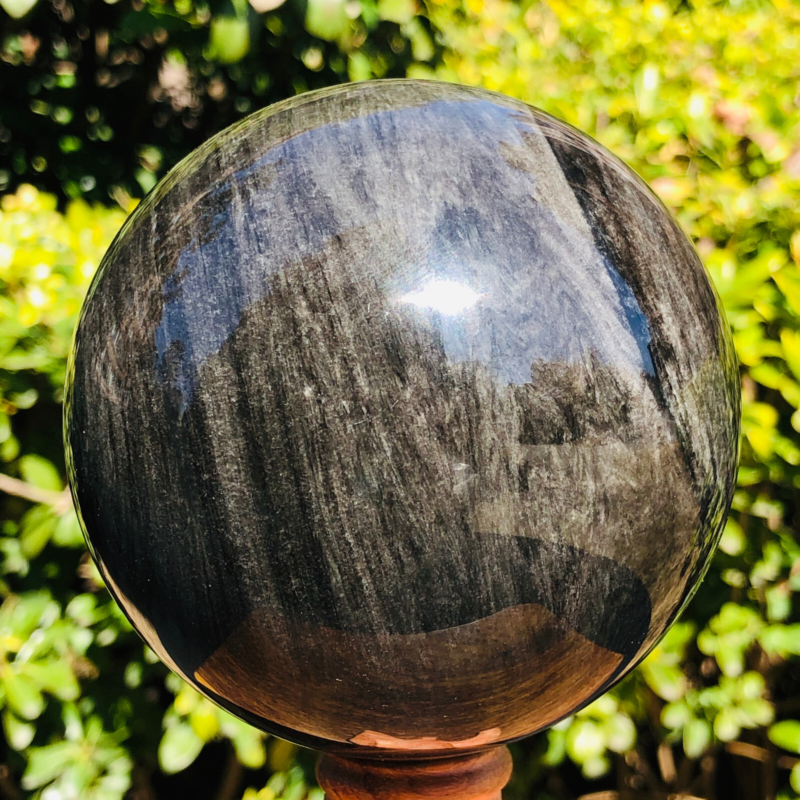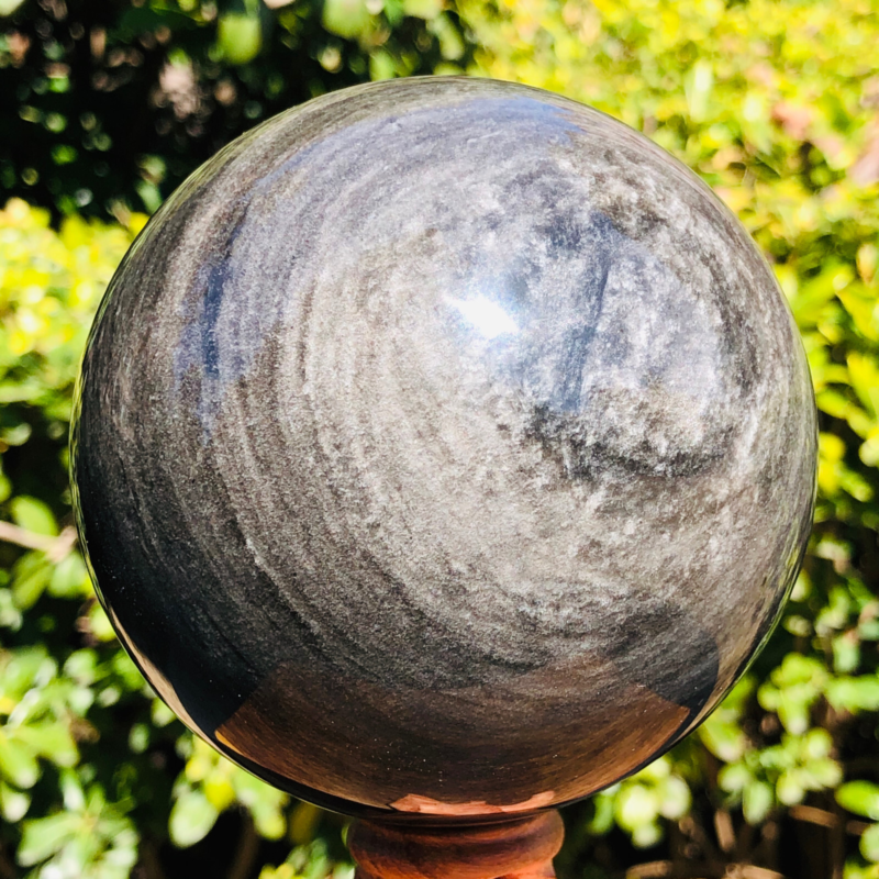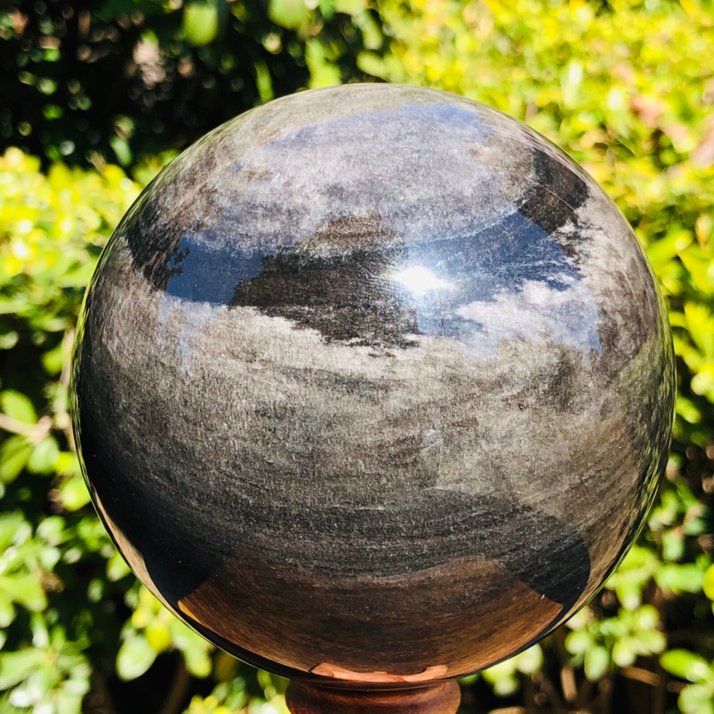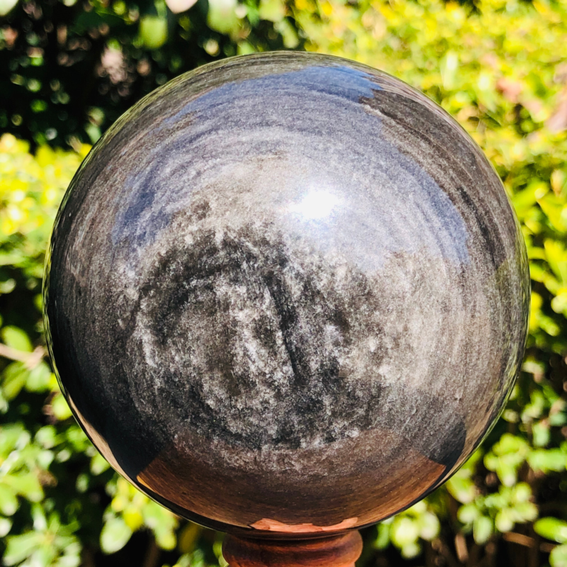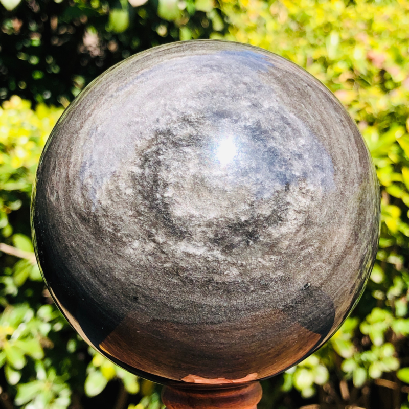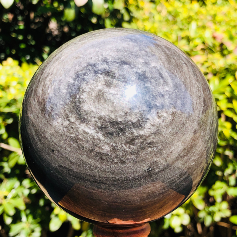2.5LB TOP Natural Silver Obsidian Sphere Crystal quartz Ball Healing 797