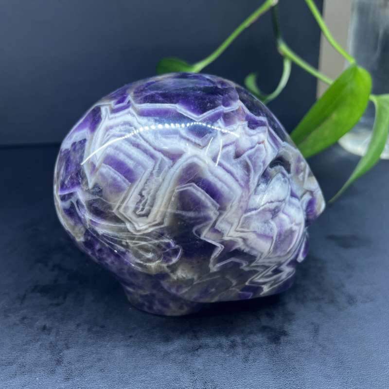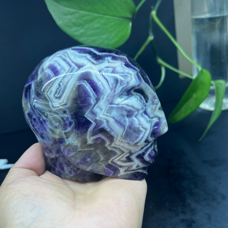 2.71LB Natural dream amethyst aliens Quartz Carved Crystal Skull Reiki Gem Decor
