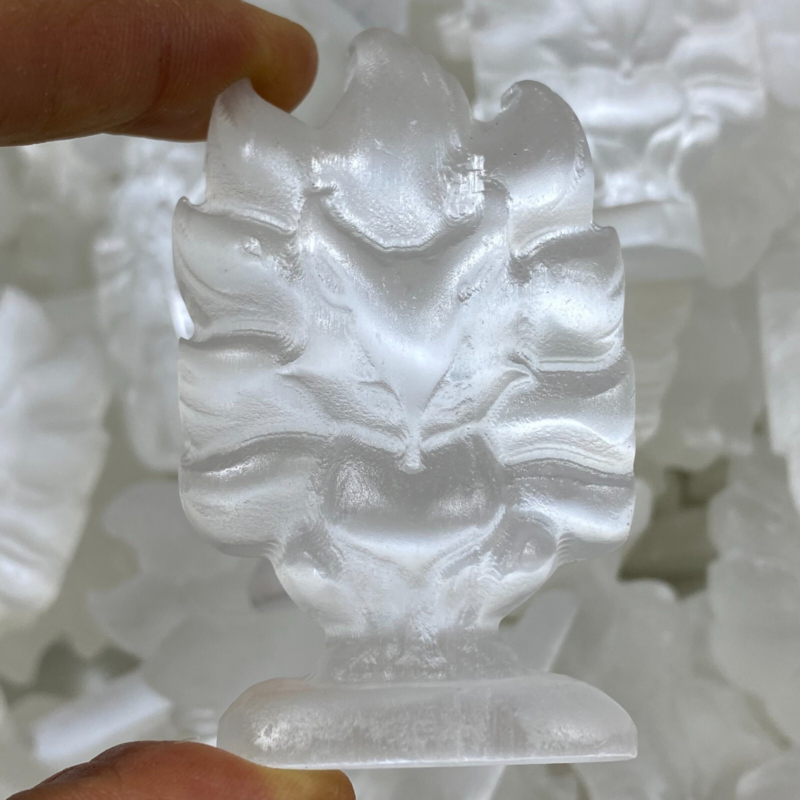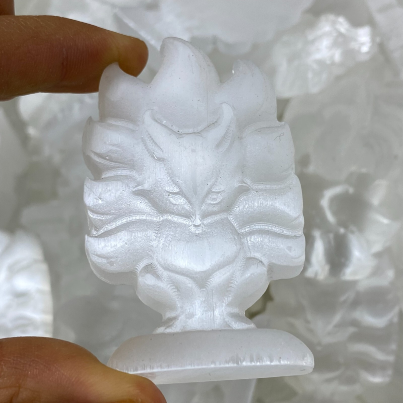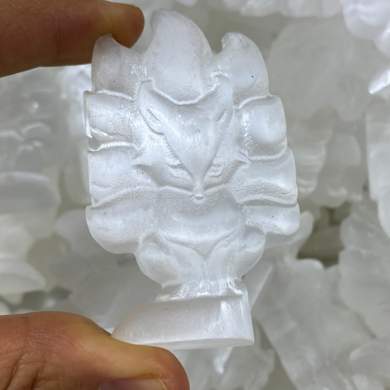 2"+Natural Gypsum Selenite fox Hand Carved Quartz Crystal Reiki healing 1PC
