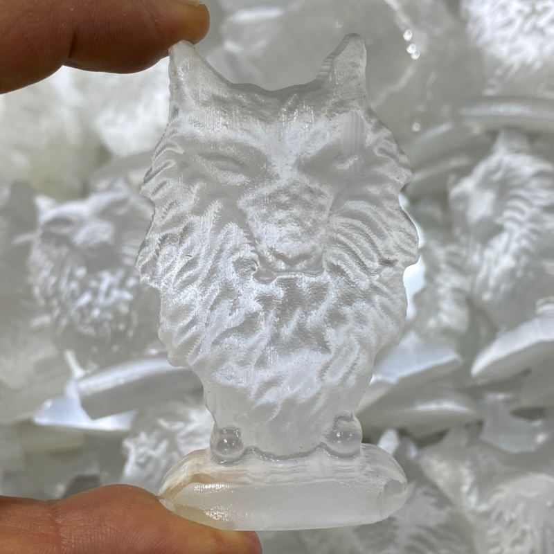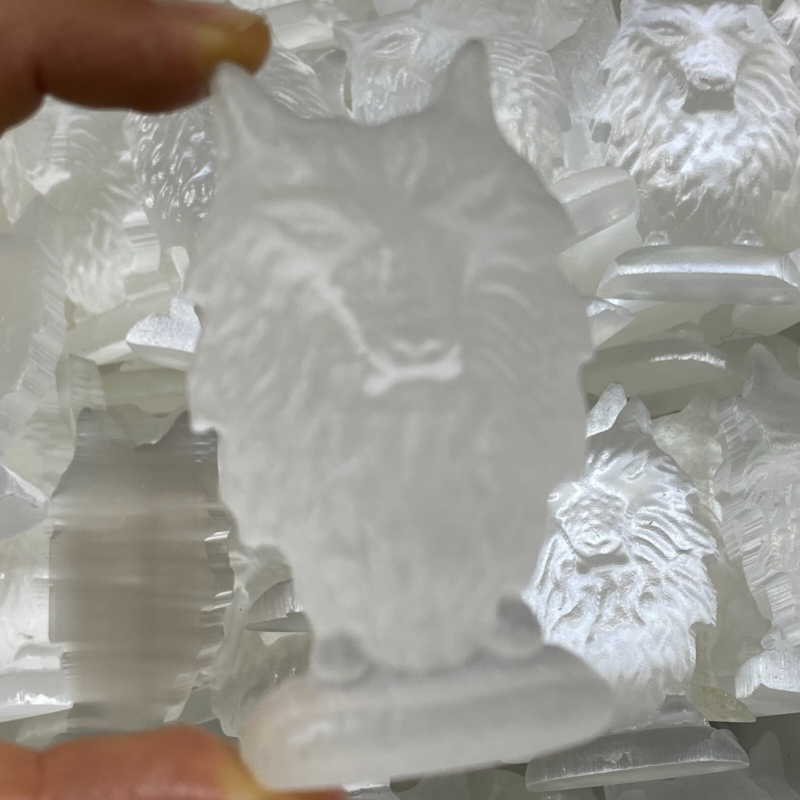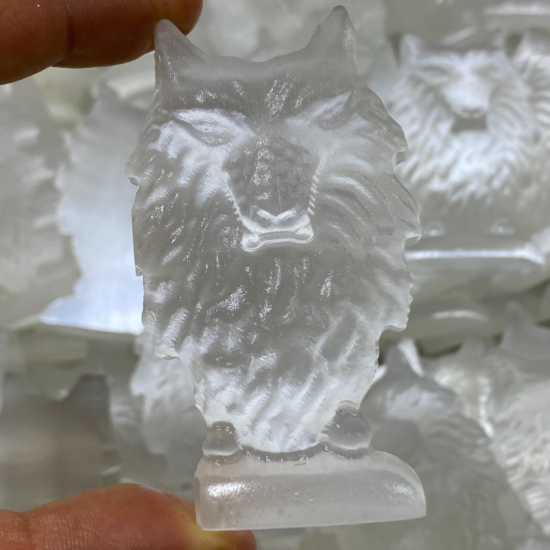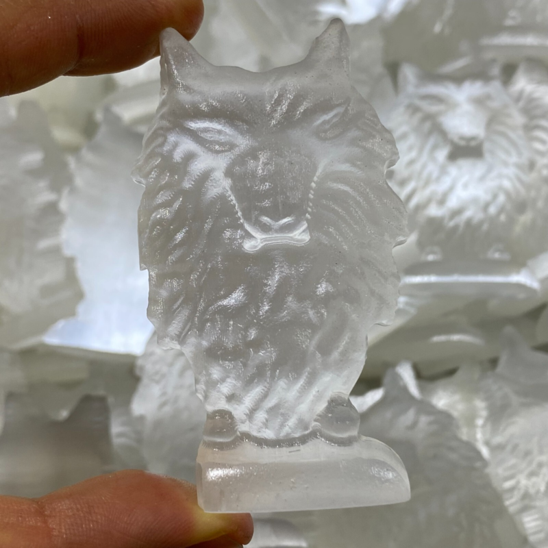 2"+Natural Gypsum Selenite Wolf Hand Carved Quartz Crystal Reiki healing 1PC