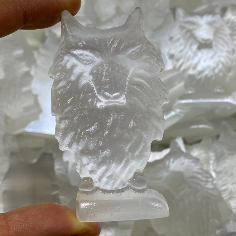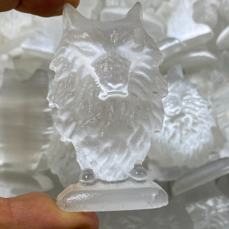 2"+Natural Gypsum Selenite Wolf Hand Carved Quartz Crystal Reiki healing 1PC