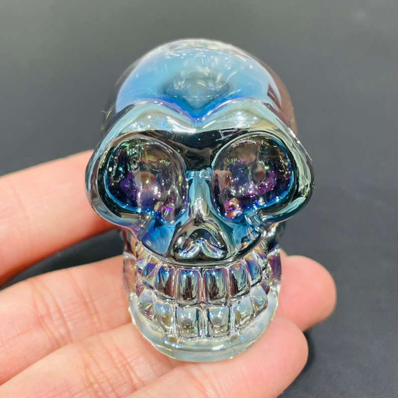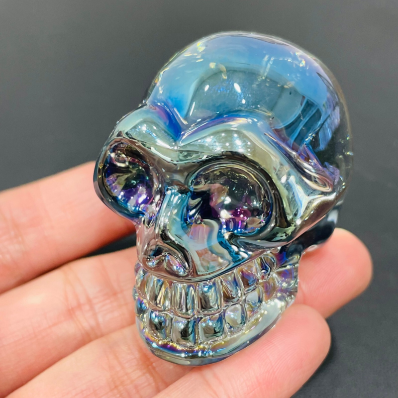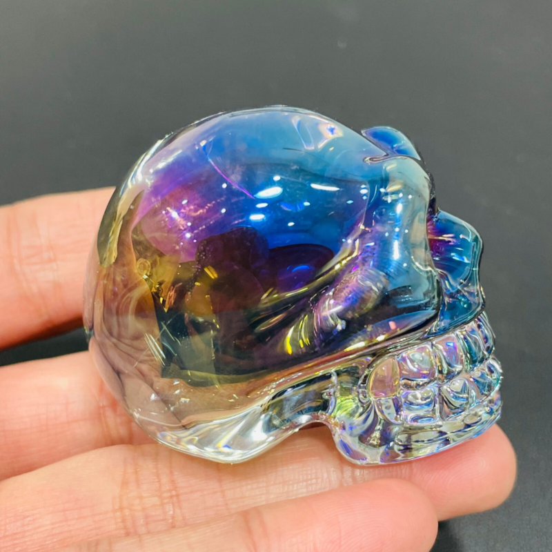 2" Rainbow Titanium melting Quartz Hand carved skull crystal reiki healing 1PC