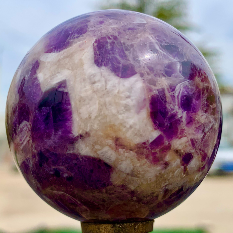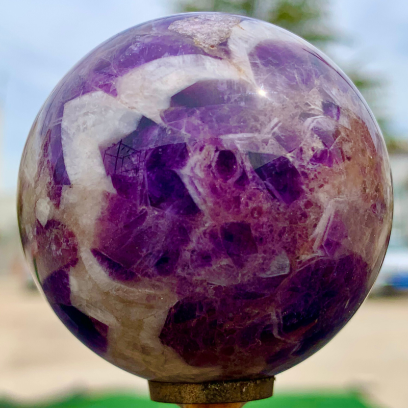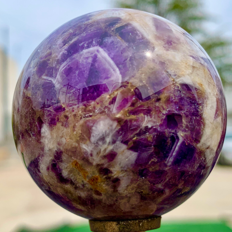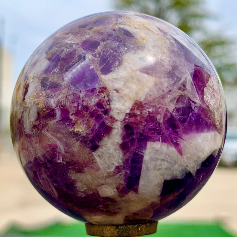 202G Natural beautiful Dream Amethyst Quartz Crystal Sphere Ball Healing