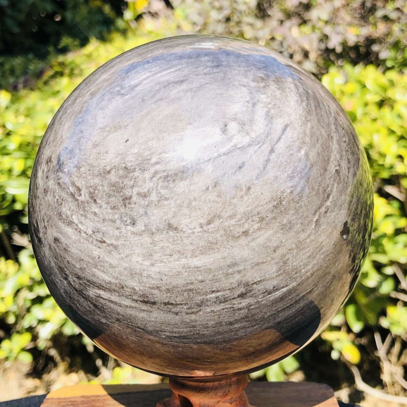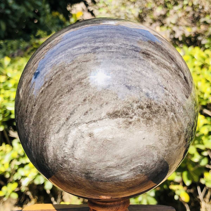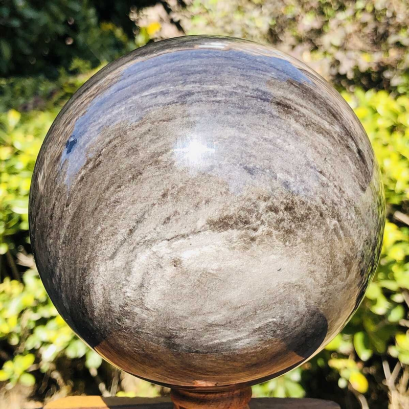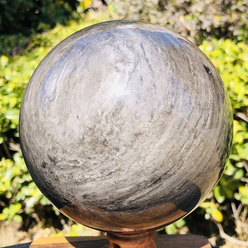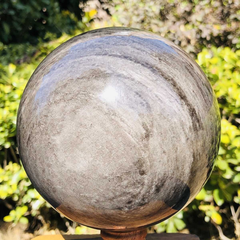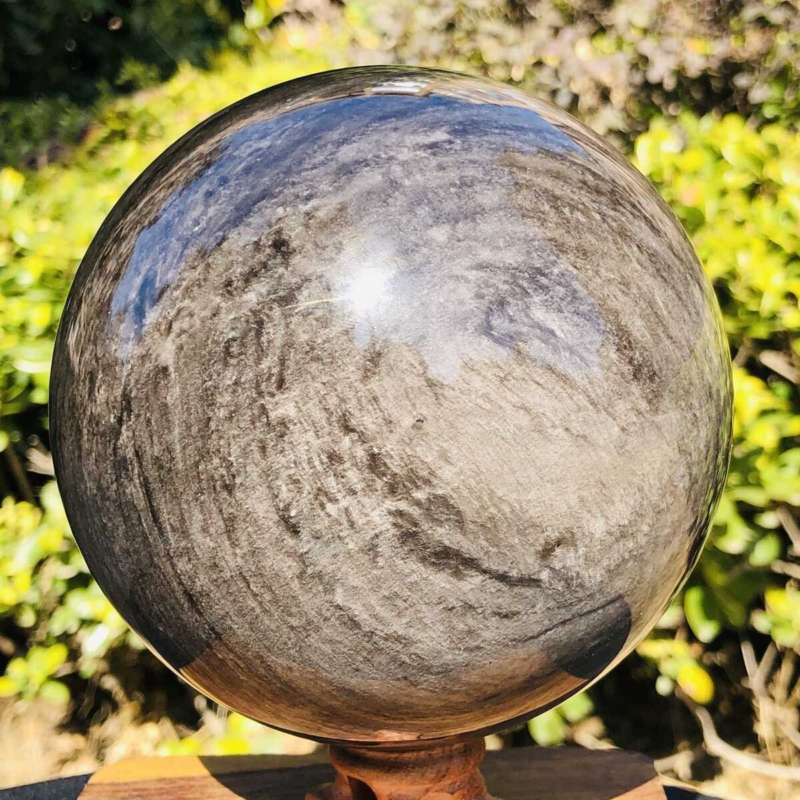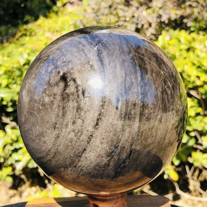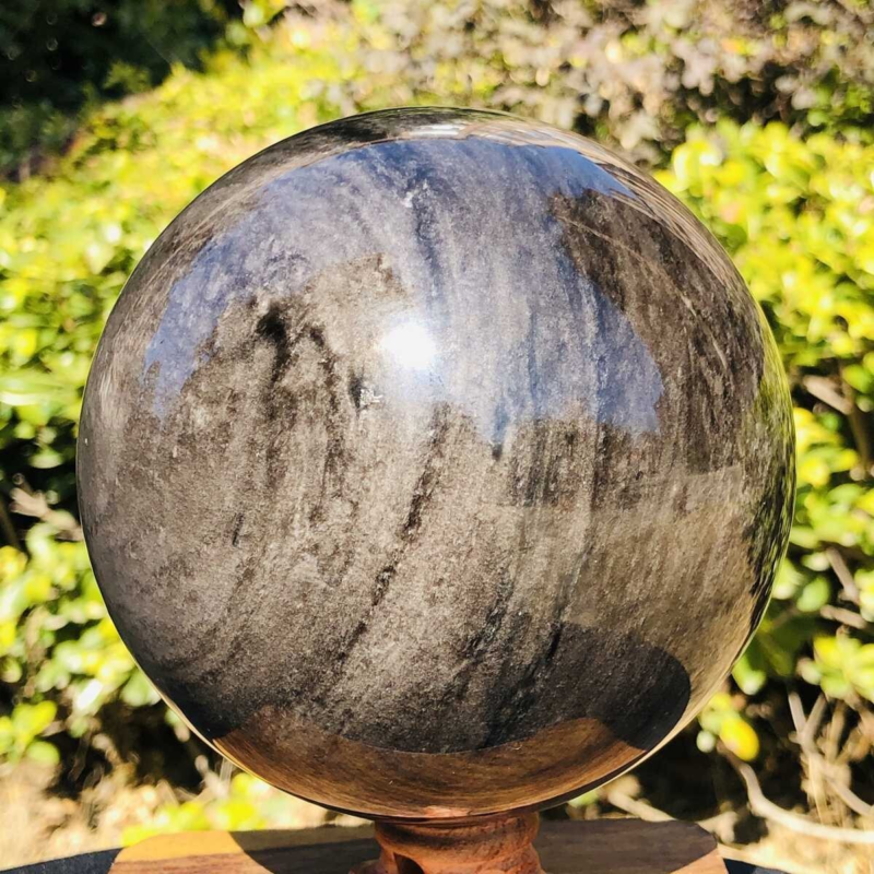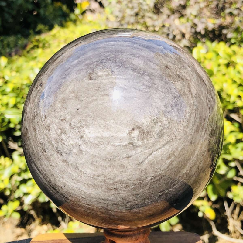 2150G HUGE Natural Silver Obsidian Sphere Crystal quartz Ball Healing 779
