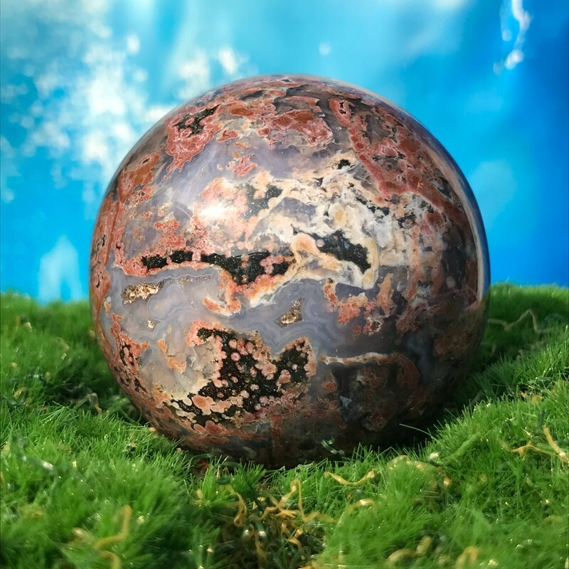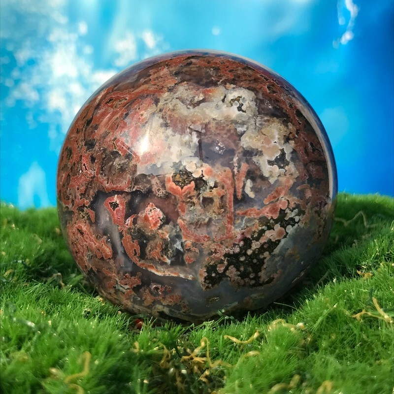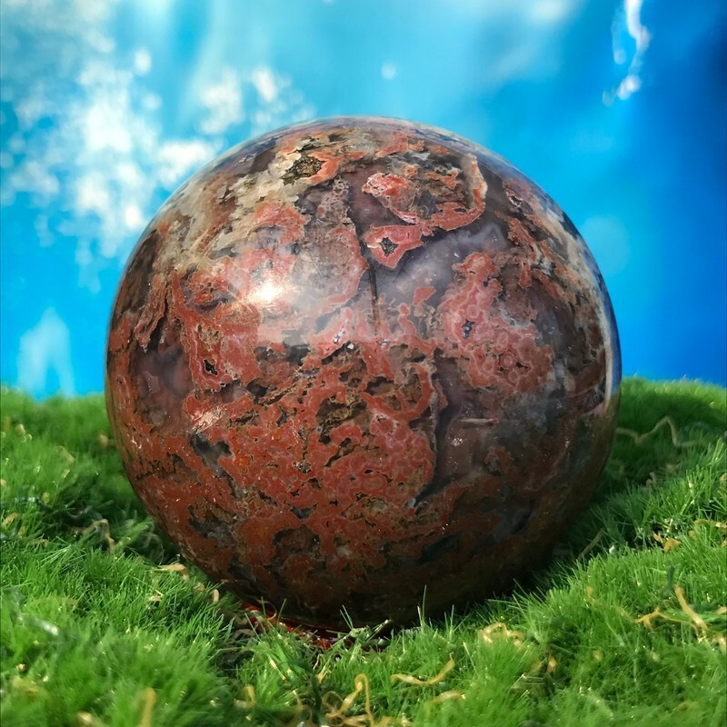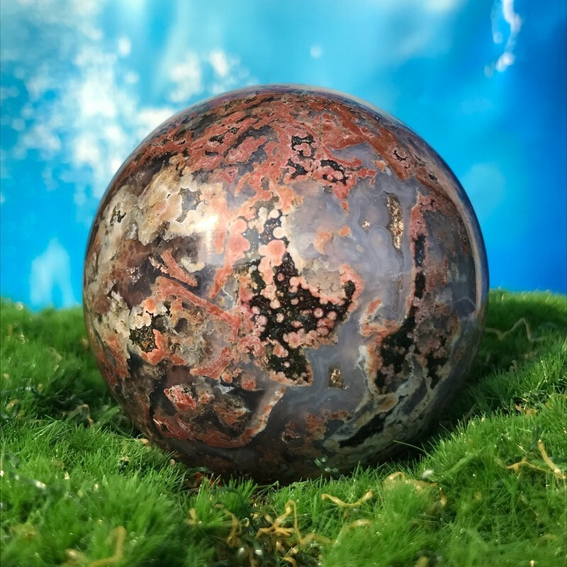 220GRare Natural Ocean Jasper Quartz Ball Crystal Ball Sample Repair