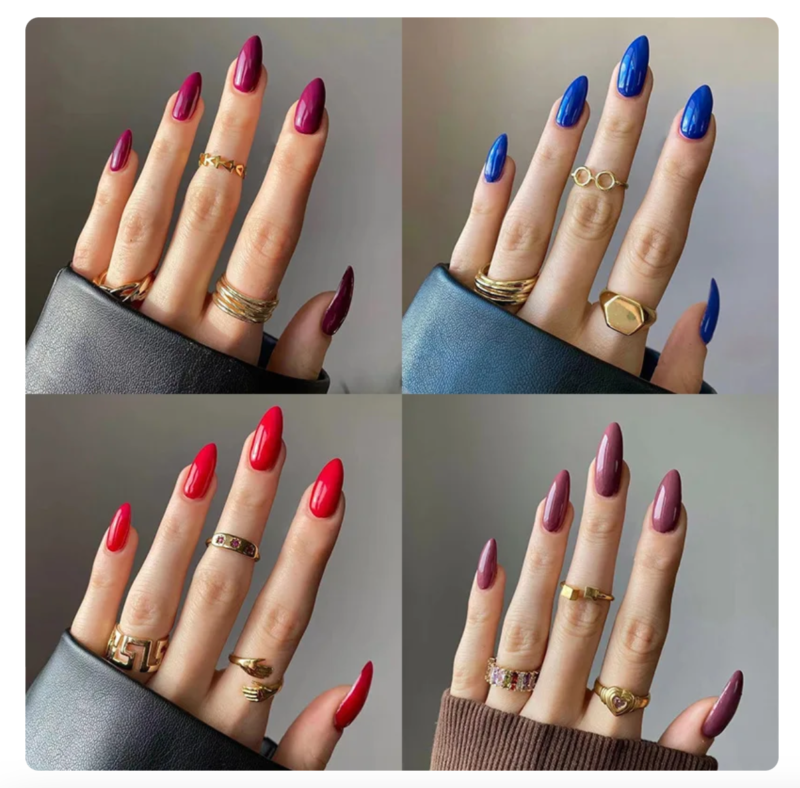 Features:Full Cover, Pre-Designed, French Manicure, Full Colour, 12 sizes, Nude, Mid Length, RED, Bright, Blue, Lime, Glue Included, Black, Stiletto, Self-Adhesive