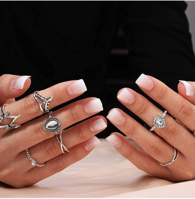 24 Short Press on nails kit w glue OMbre French nude white square