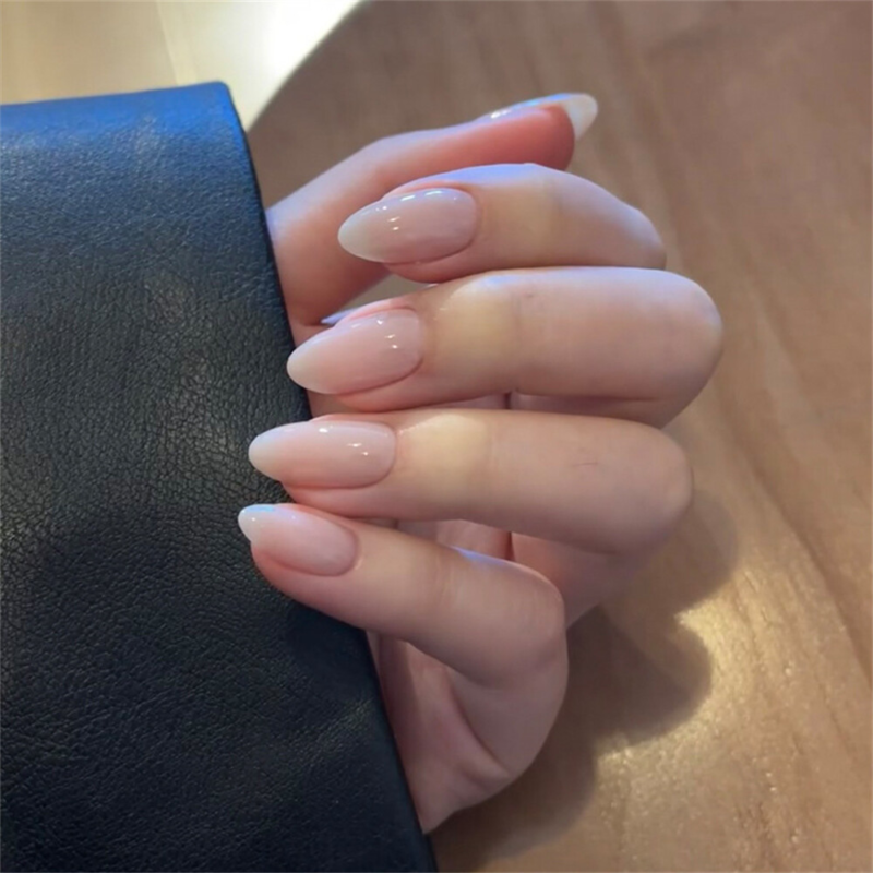 24pcs Almond Short False Nail Nude Color Fashionable Press on Nails for Nail Art