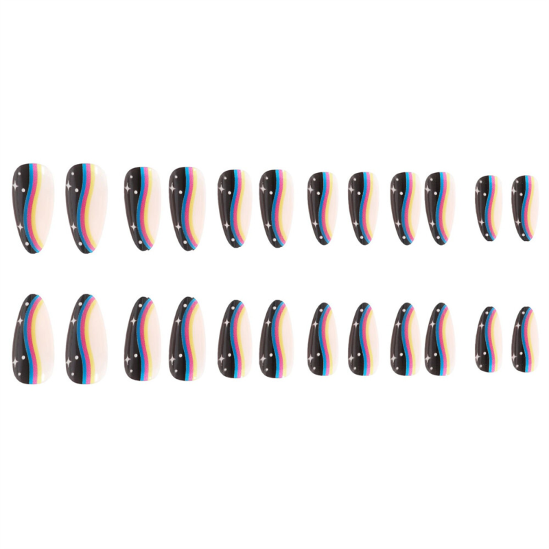 24pcs Dream Stars False Nail Short Almond Glossy Press on Nails for Nail Art