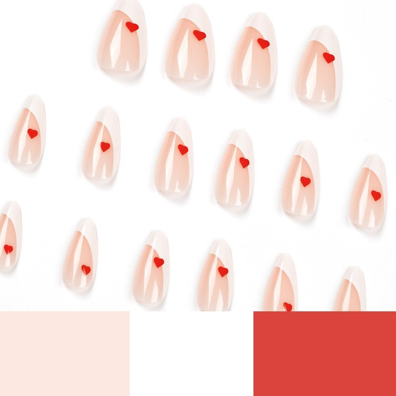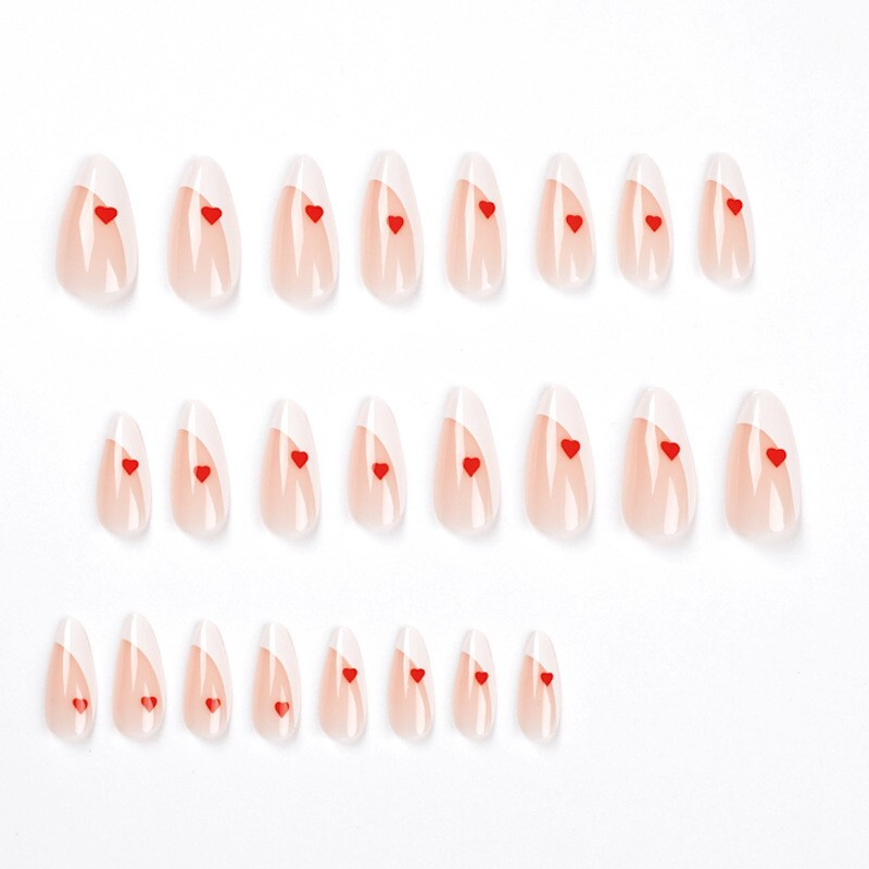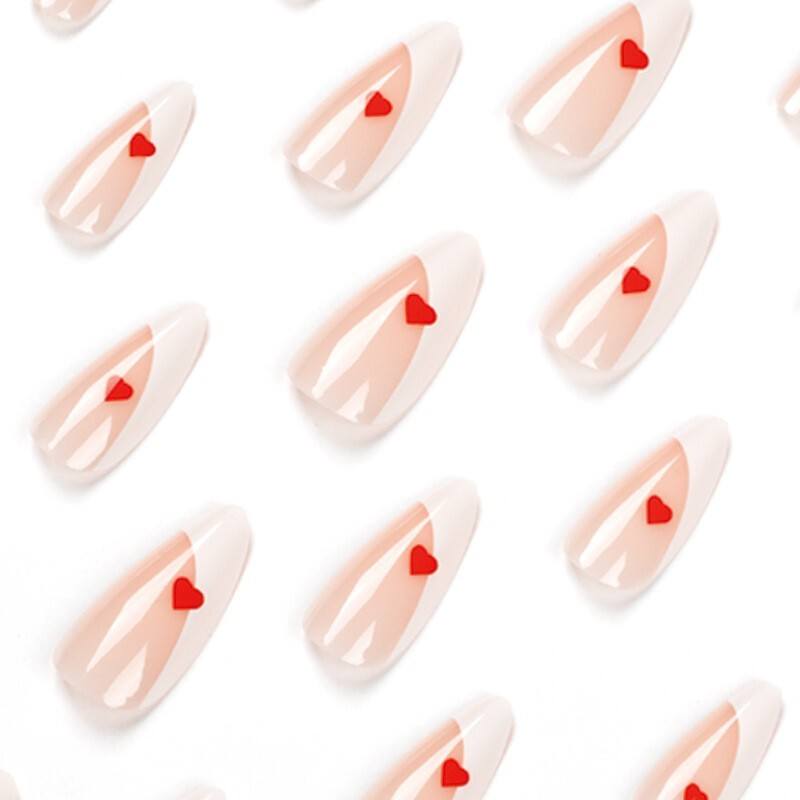 24pcs Minimalist French Heart False Nail Almond Press on Nail for Nail Art