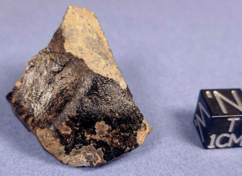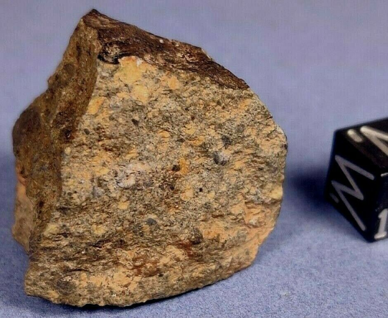Offering here is a remnant crusted, 26.665 gram piece of NWA 6560 Howardite Achondrite meteorite, recovered in Morocco's Saharan Desert in 2010. There were only 5800 grams found, so this meteorite is considered on the more rare side. Classified in 2011 as a Howardite in the HED group of meteorites stemming from the asteroid 4 Vesta. The pictured specimen has remnant black crust with wide areas of exposed matrix and measures approximately 33 mm x 24 mm x 35 mm. HED meteorites range in age from 4.4 -4.5 billion years ago and is determined to be ejection debris from an impact event on the asteroid body.. The NWA 6560 is mentioned in the "METEORITICAL BULLETIN" #100 (2012). A display case is included in your purchase.