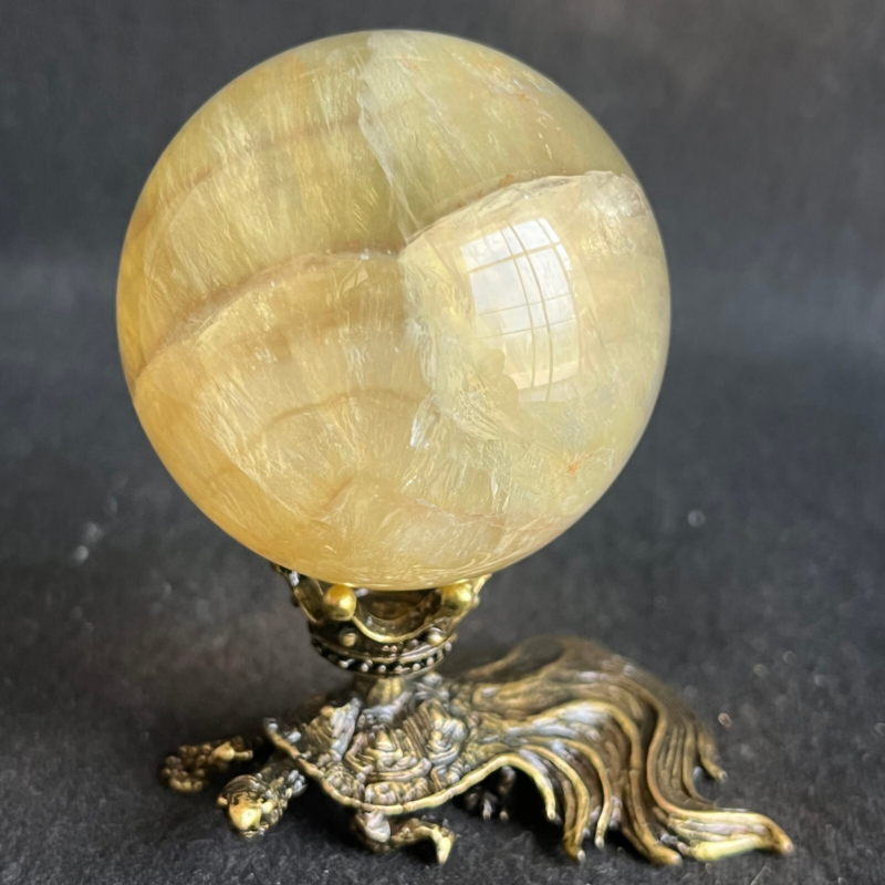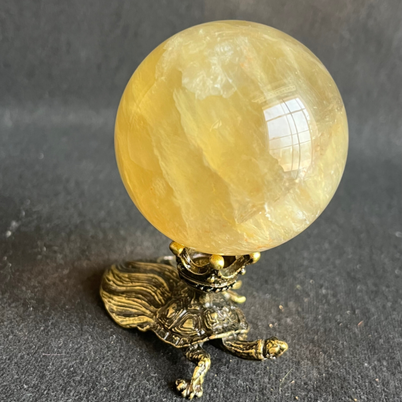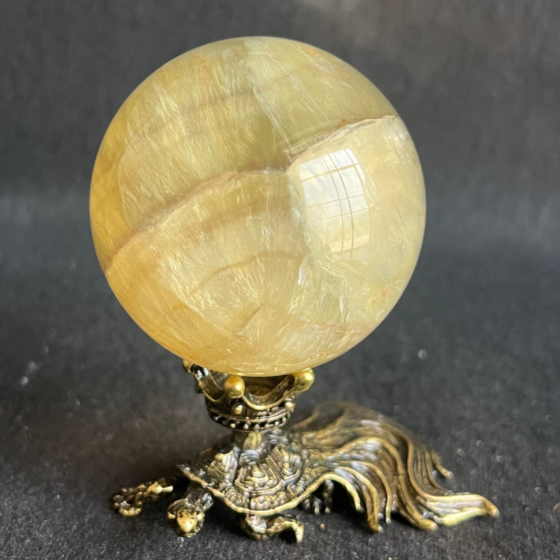 269G Natural yellow fluorite quartz crystal ball sphere healing+stand