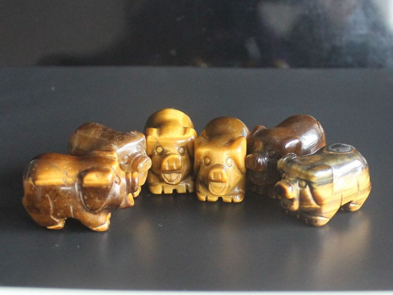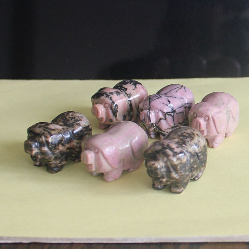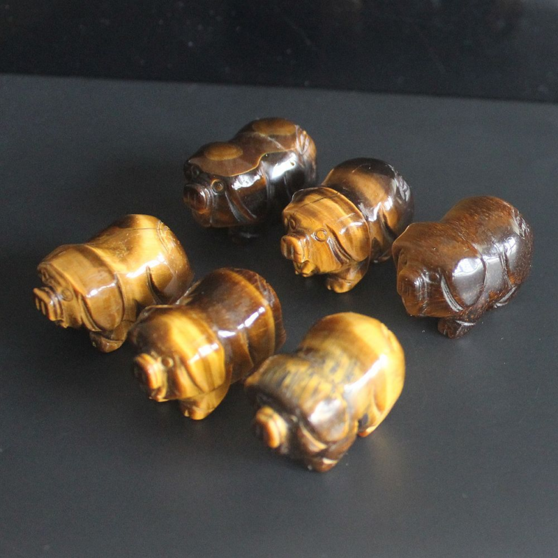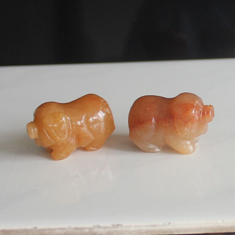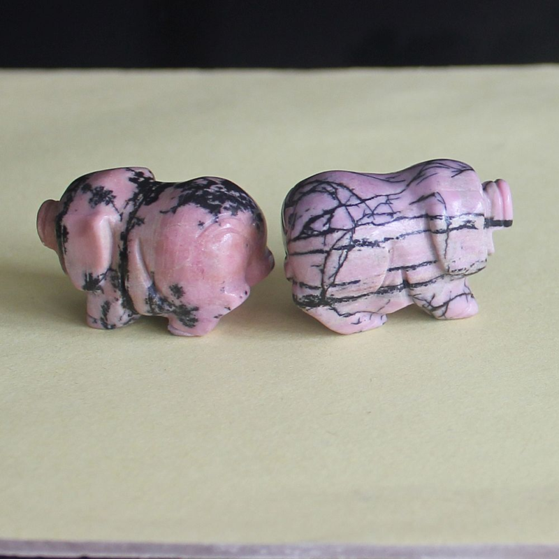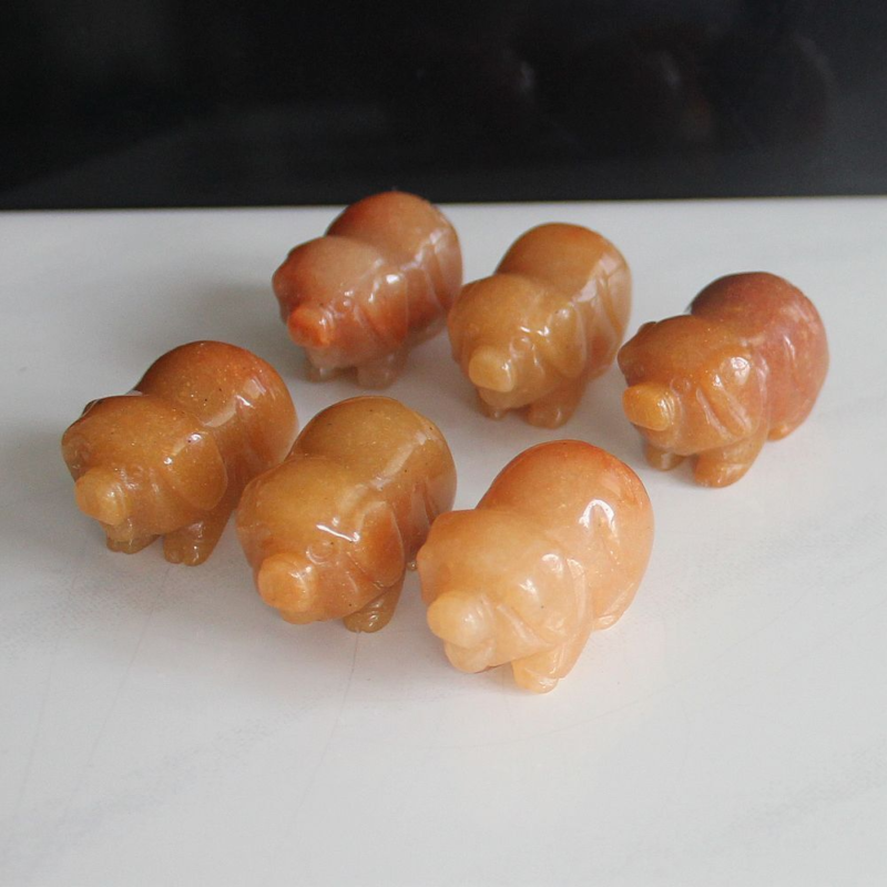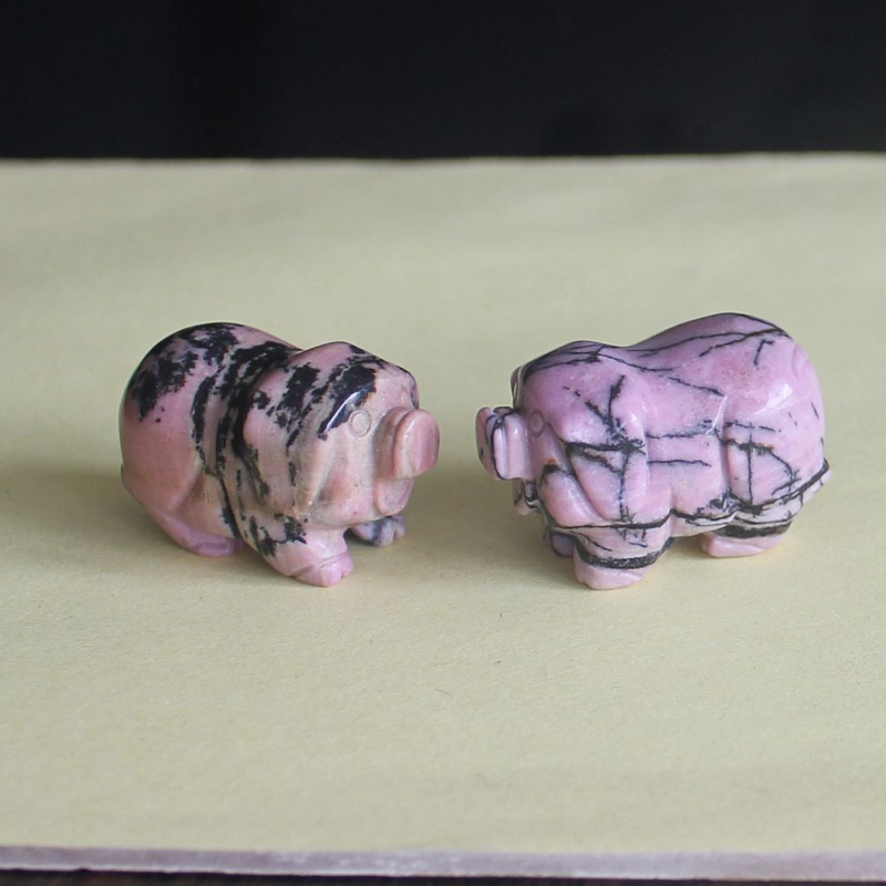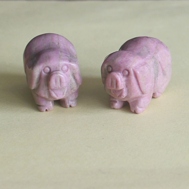 2pcs Mini carved gemstome crystal pig figurine animal carving pockets stone 30mm