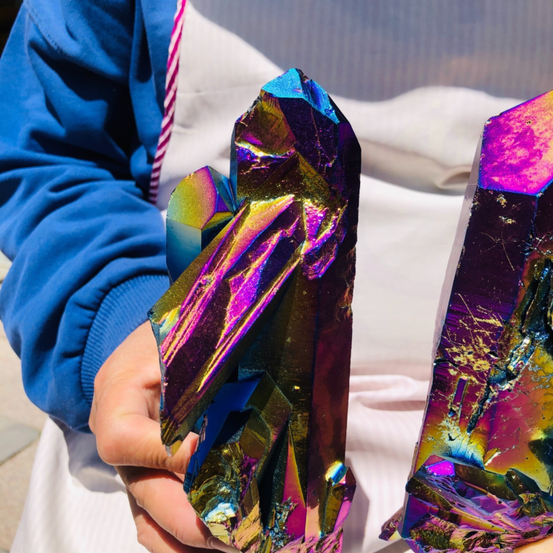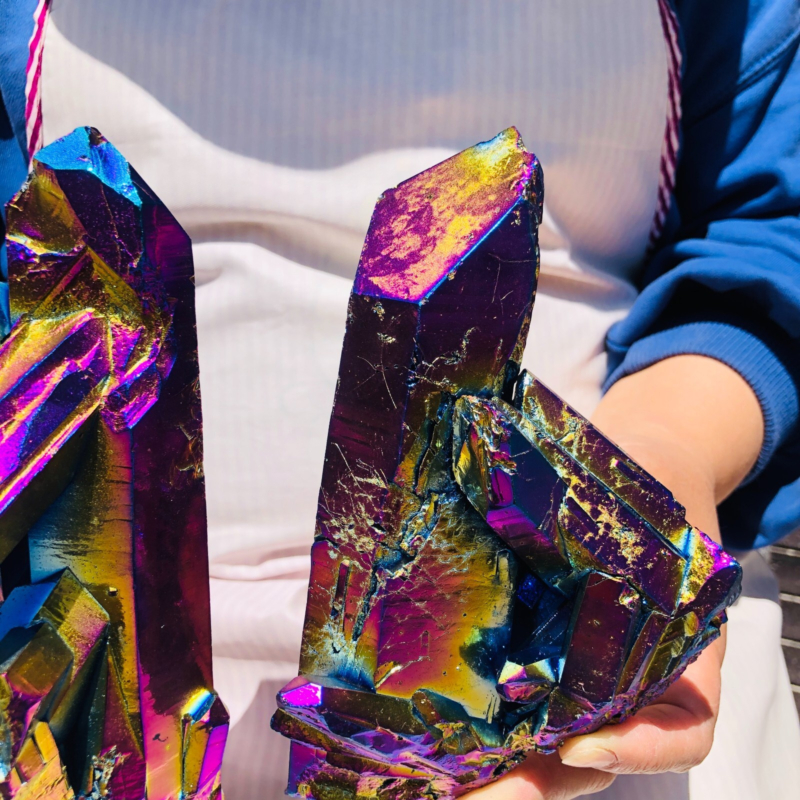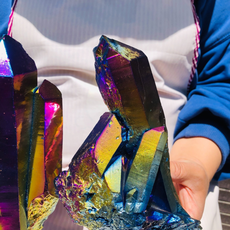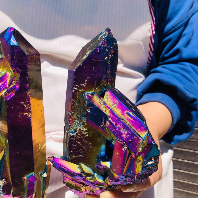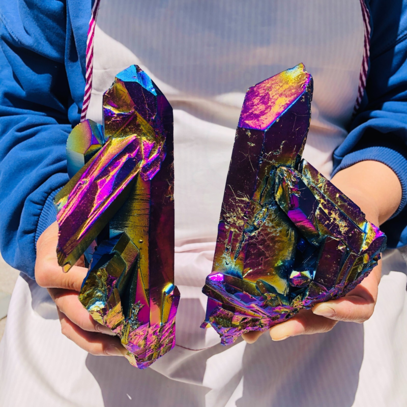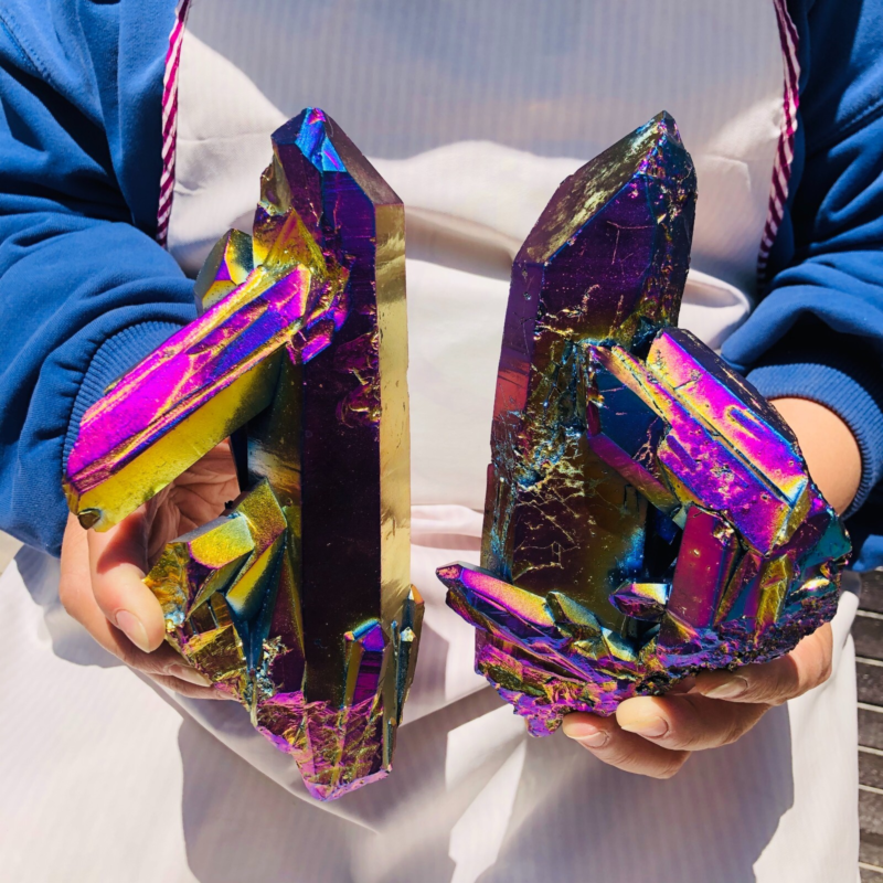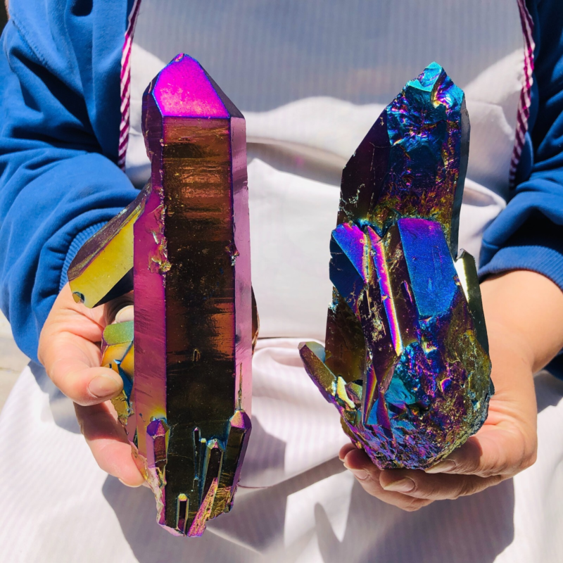 2pieces4.18LB Color Flame Electroplate Quartz Crystal Specimen Healing point 484