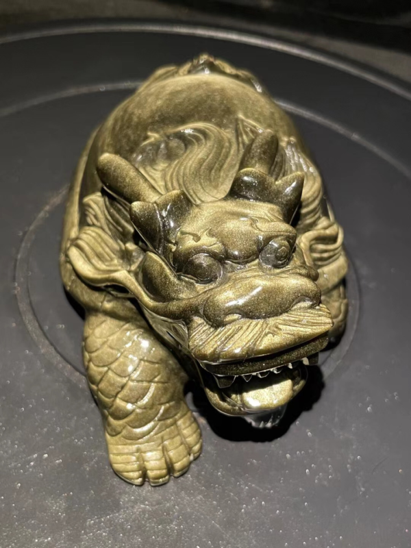 3.08LB Natural Quartz gold obsidian Skull Hand Carving Crystal Skull Reiki