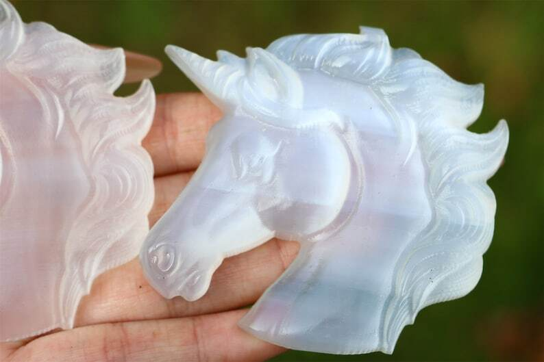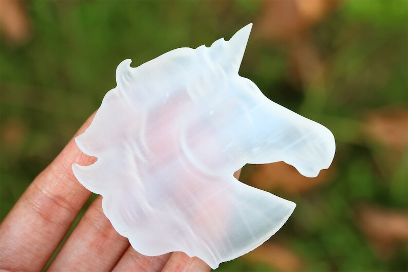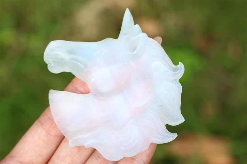 3.1" Hand Carved Natural Gypsum Unicorn Reiki Crystal Skull Decor Gift 1pc