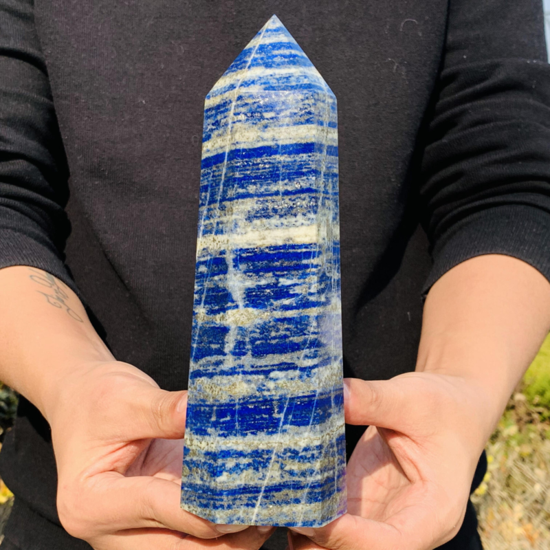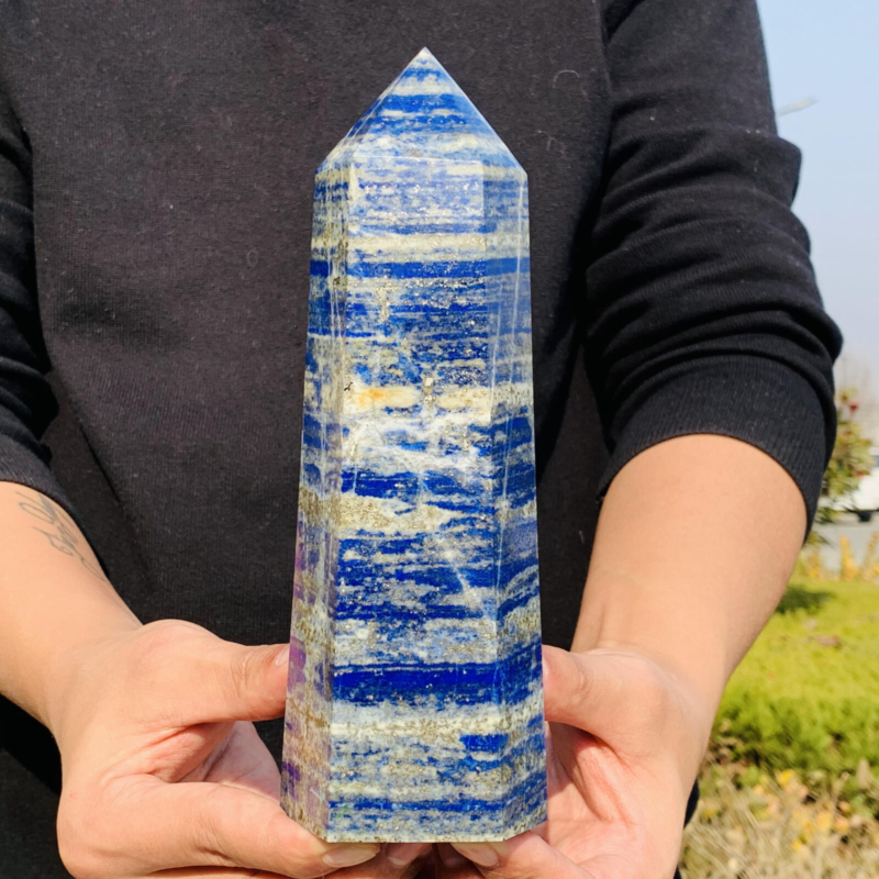 3.49LB Natural lapis lazuli Quartz Crystal Obelisk Wand Point Healing Stone