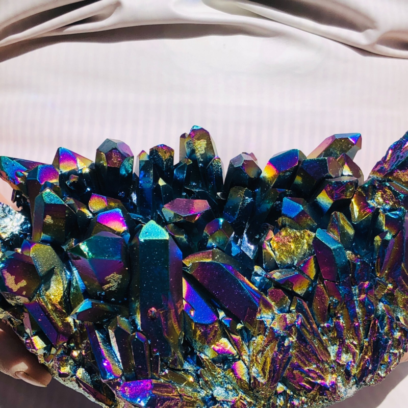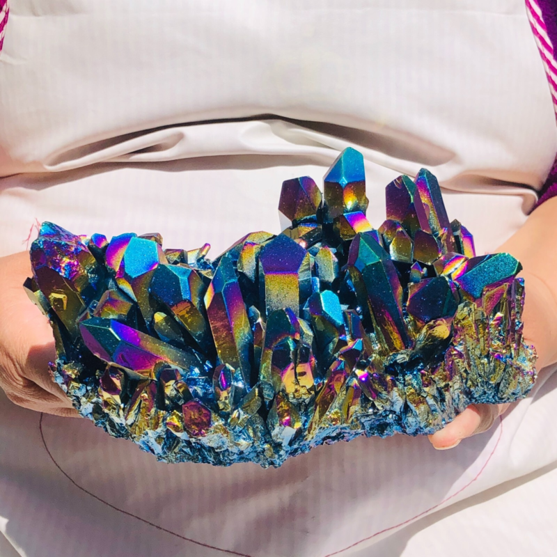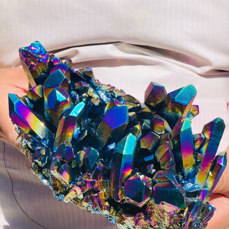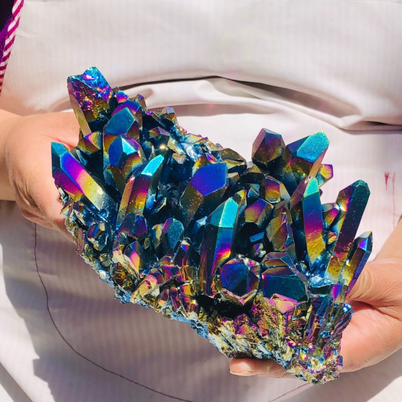 3.67LB Color Flame Aura Electroplate Quartz Crystal Specimen Healing point 474