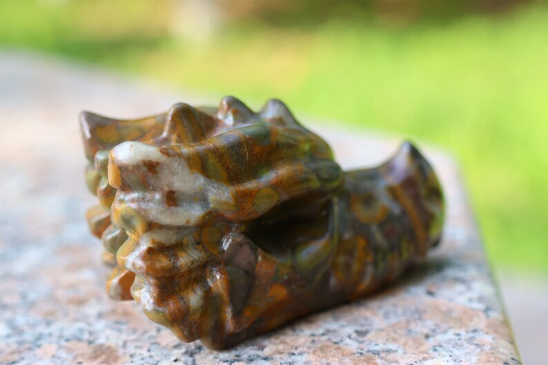 3" Carved Natural Azolite Dragon Head Reiki Crystal Skull Decor Crystal gift 1PC