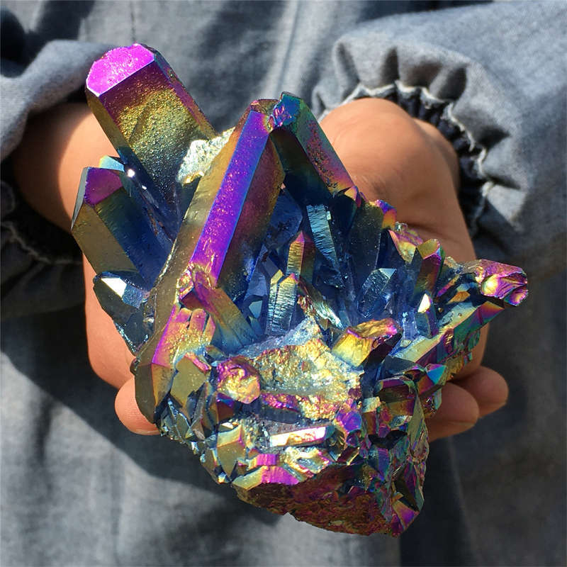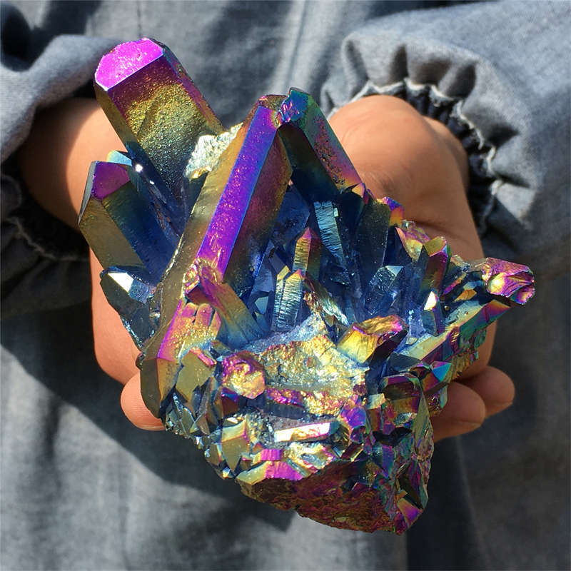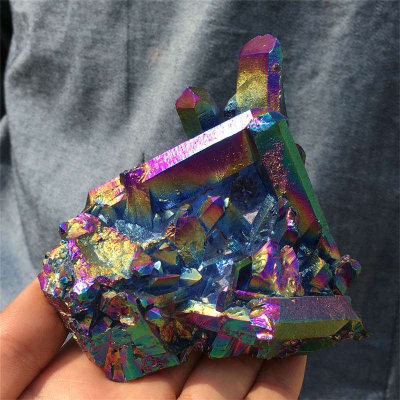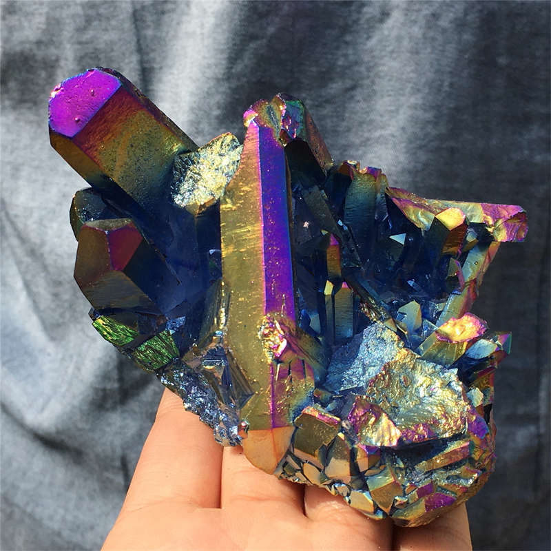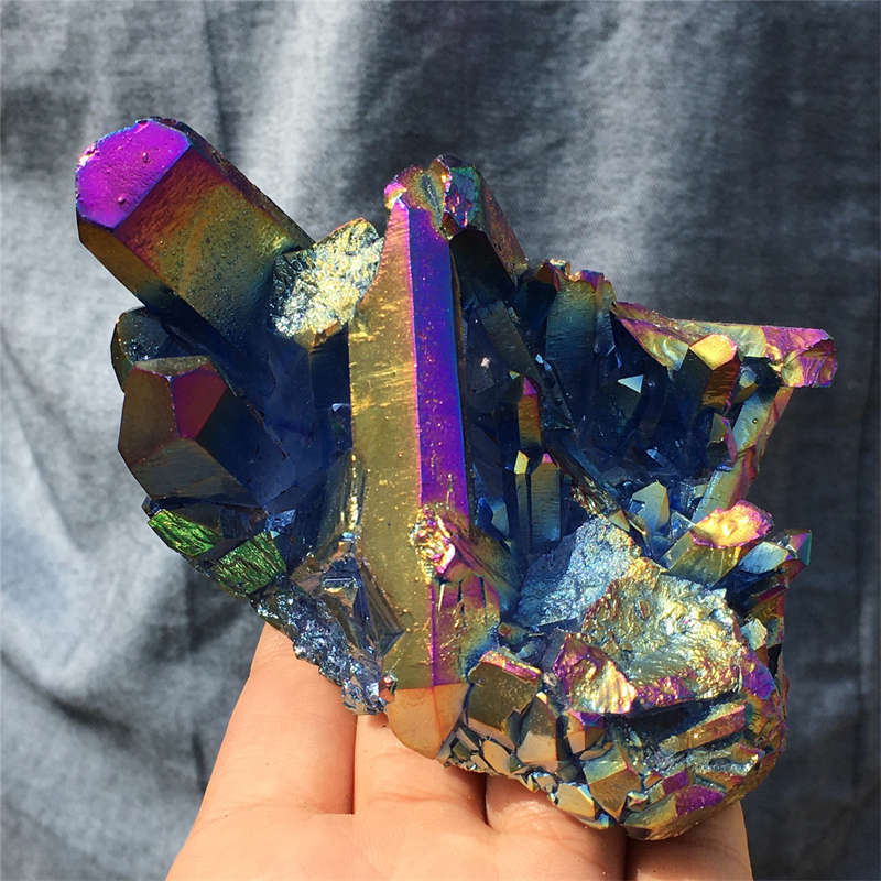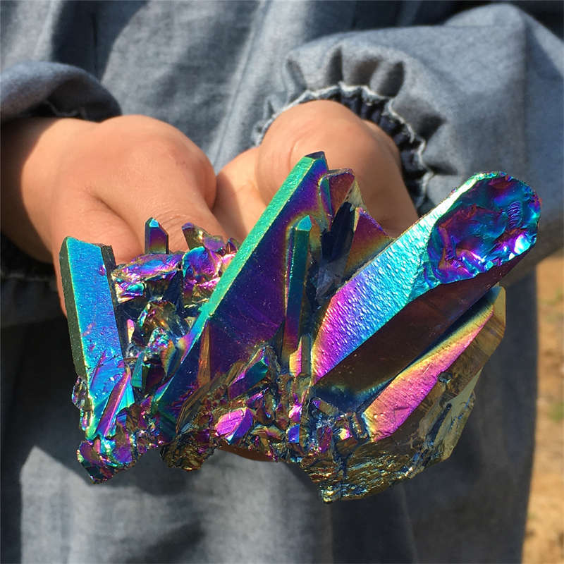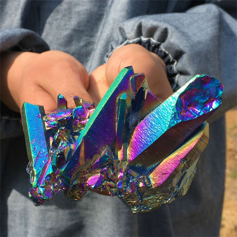 320g Electroplate Rainbow cluster quartz crystal mineral specimen reiki healing