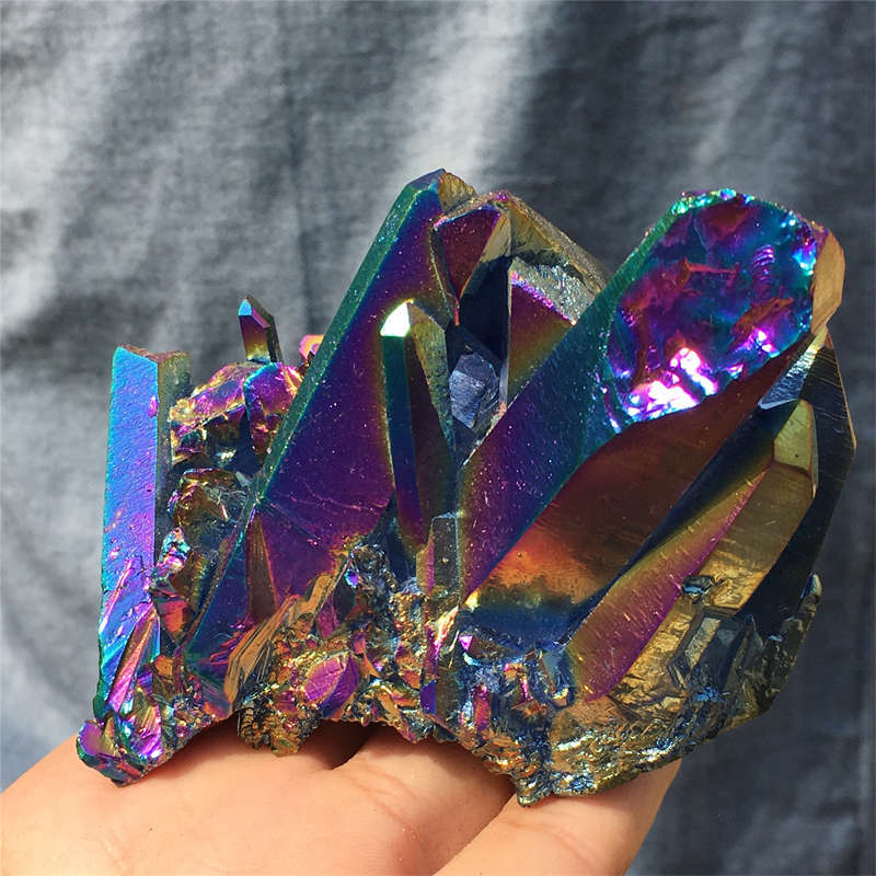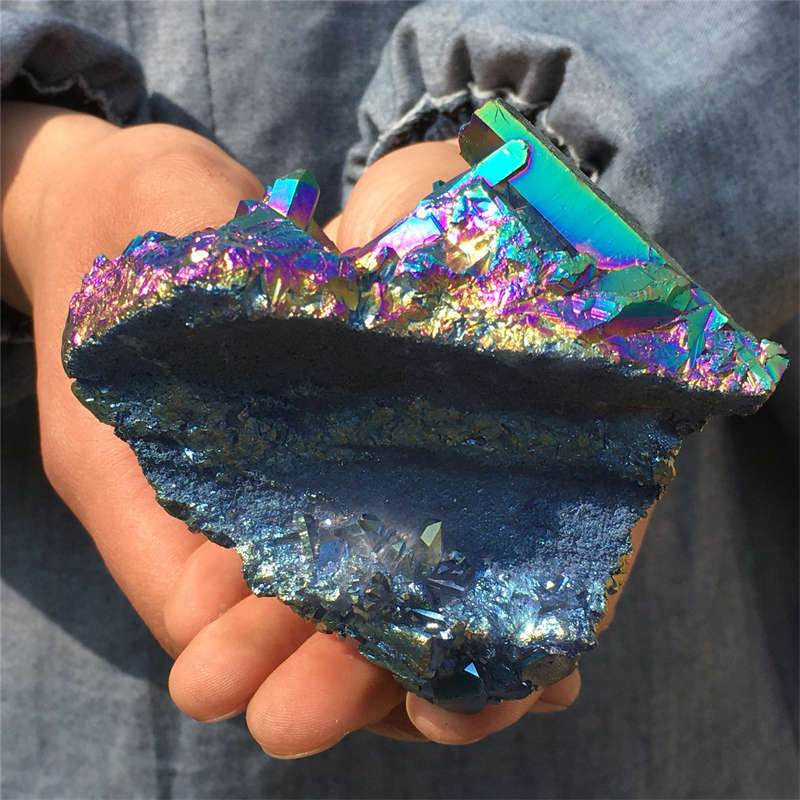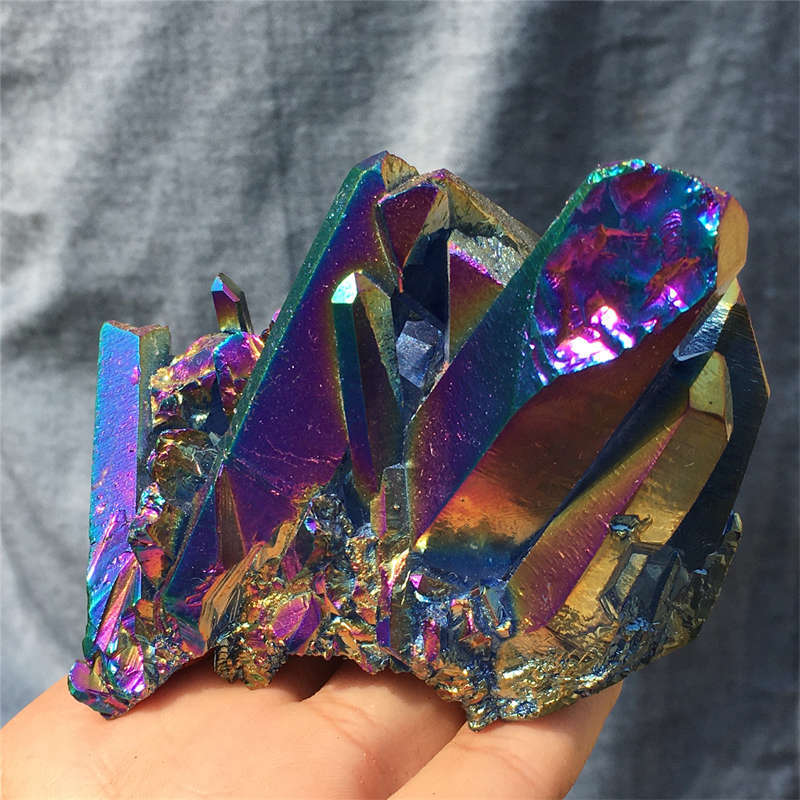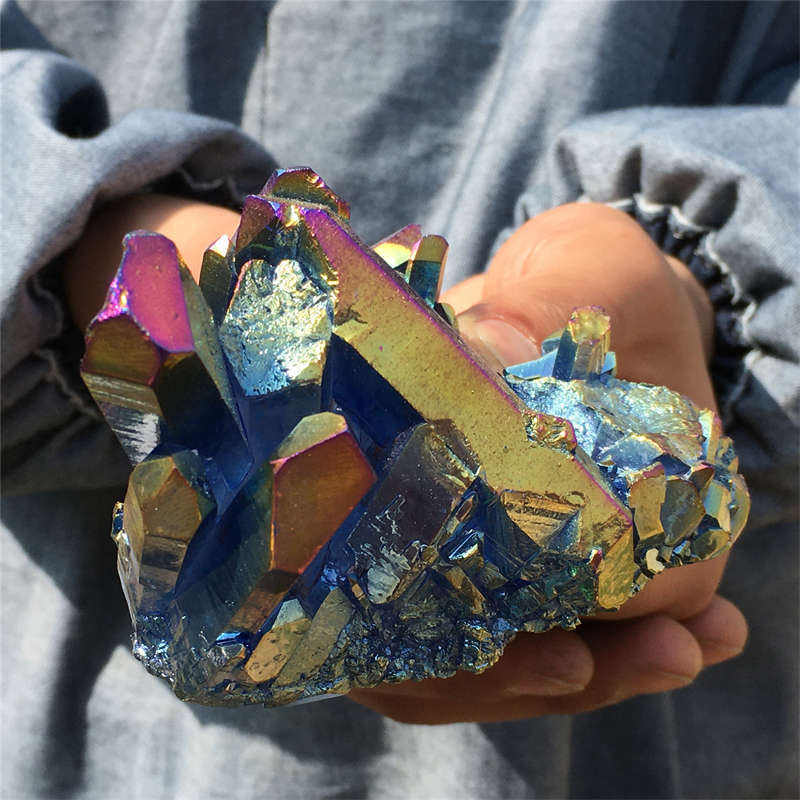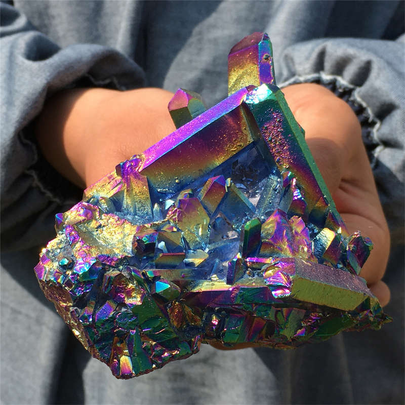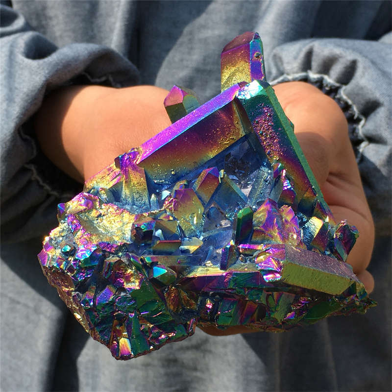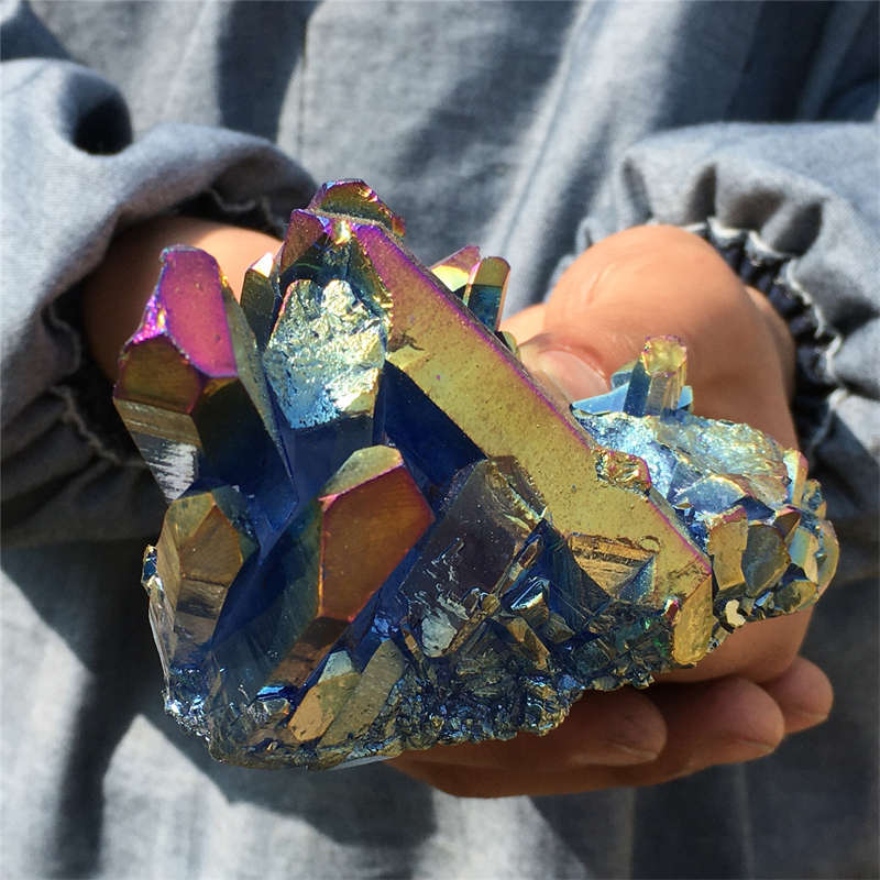 320g Electroplate Rainbow cluster quartz crystal mineral specimen reiki healing